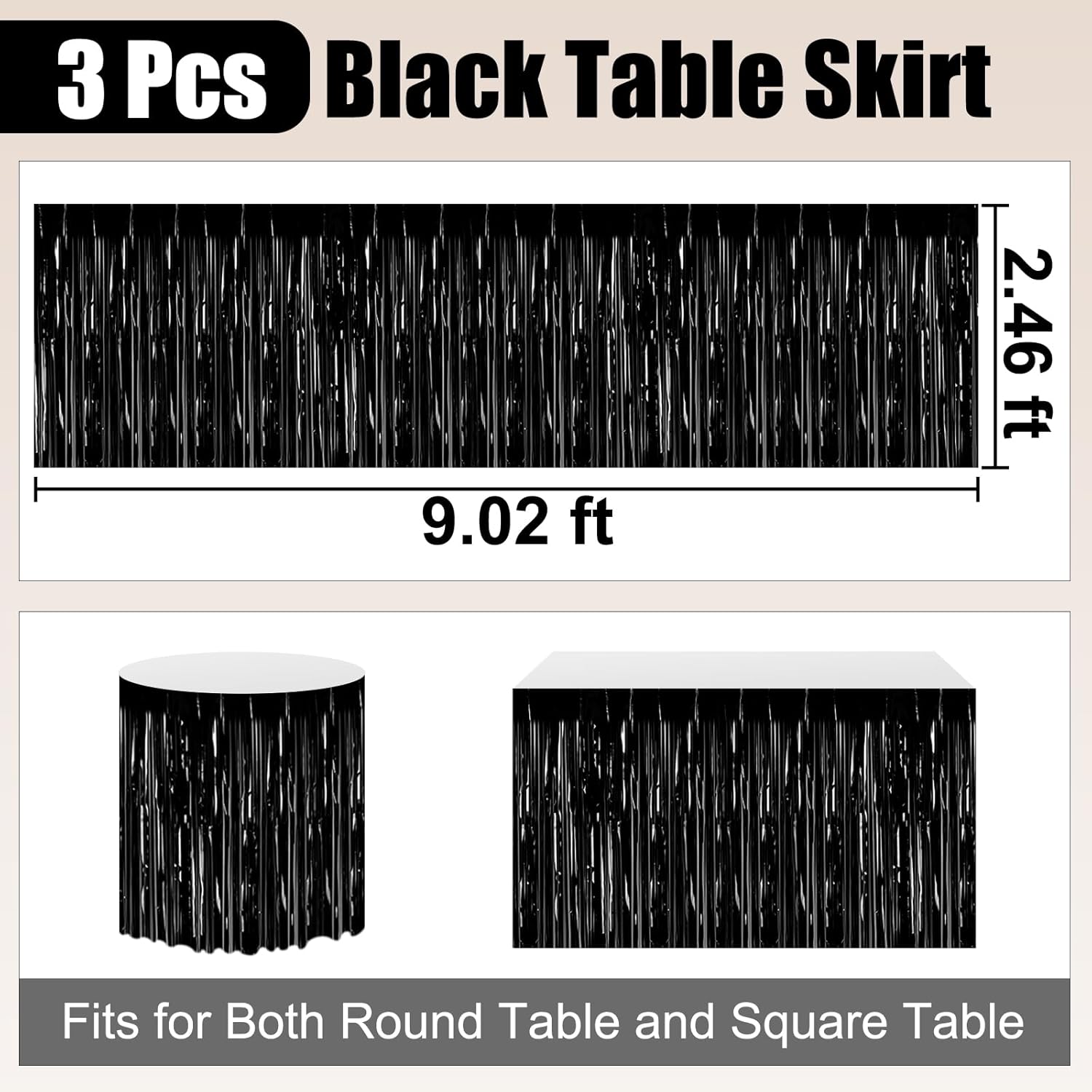 • Easy to Use: the foil fringe table skirts are made of metallic foil, lightweight and easy to use; Each metallic fringe table skirts comes with self-adhesive tape on the top for easy attachment to your wall or table, great for your party venue decoration.