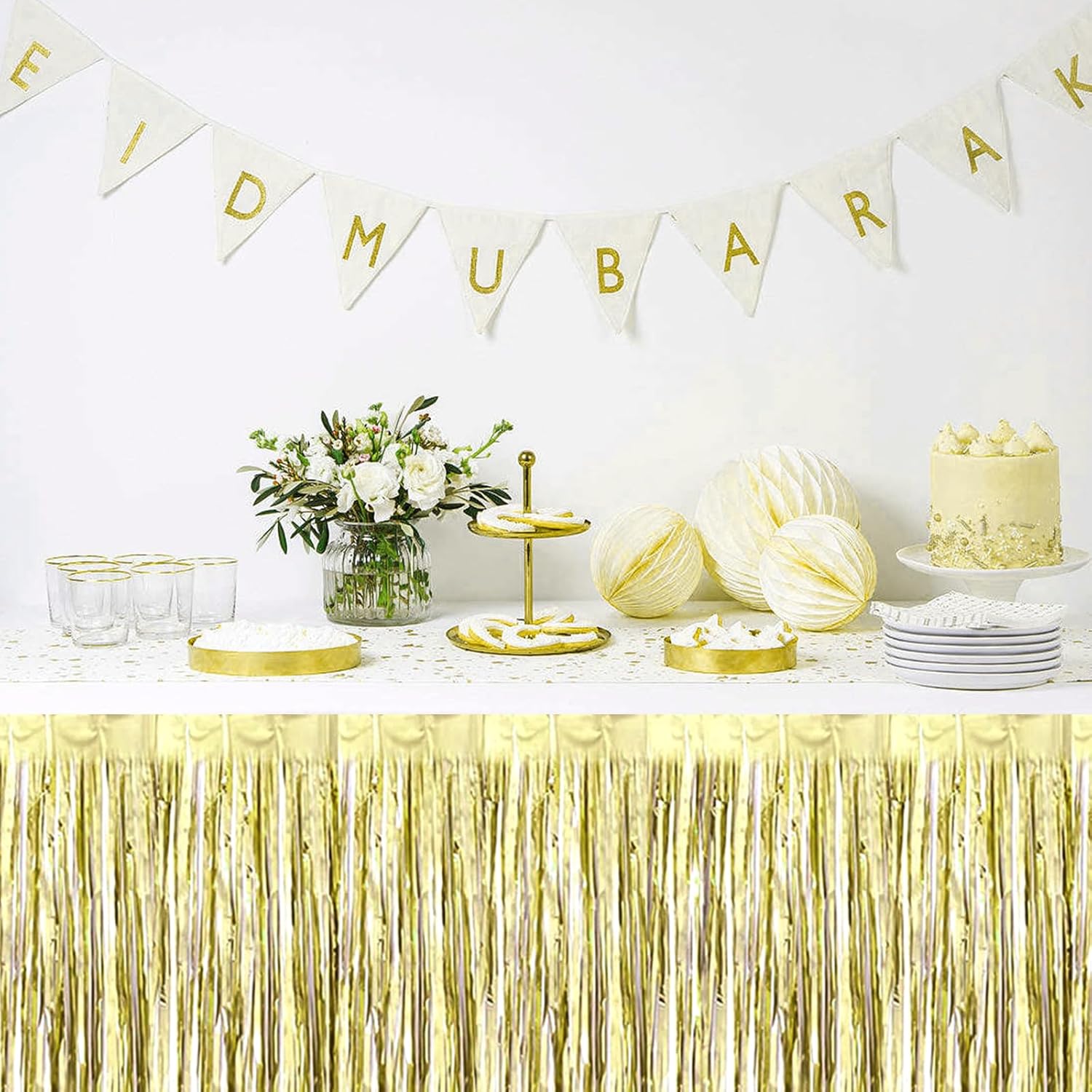 3 Pack 29 x108 Inch Light Gold Foil Fringe Table Skirts Metallic Banner for Tinsel Streamer Garland Backdrop for Parade Floats Wedding Thanksgiving Birthday Christmas New Year Party Decoration
