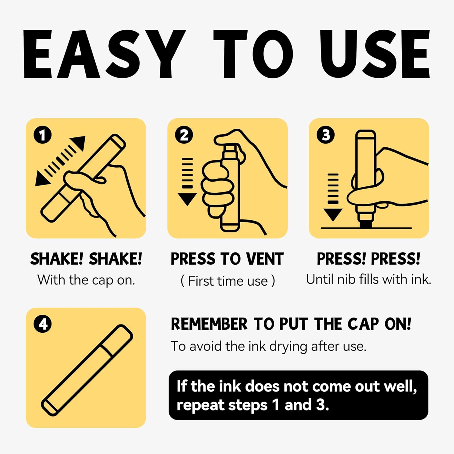 • 3-IN-1 NIB: (fine, medium, and jumbo) The thick tip permanent markers set felt wide tip is not only equipped with 3-IN-1 nib, but also allows the jumbo marker paint pen to produce smooth and even ink