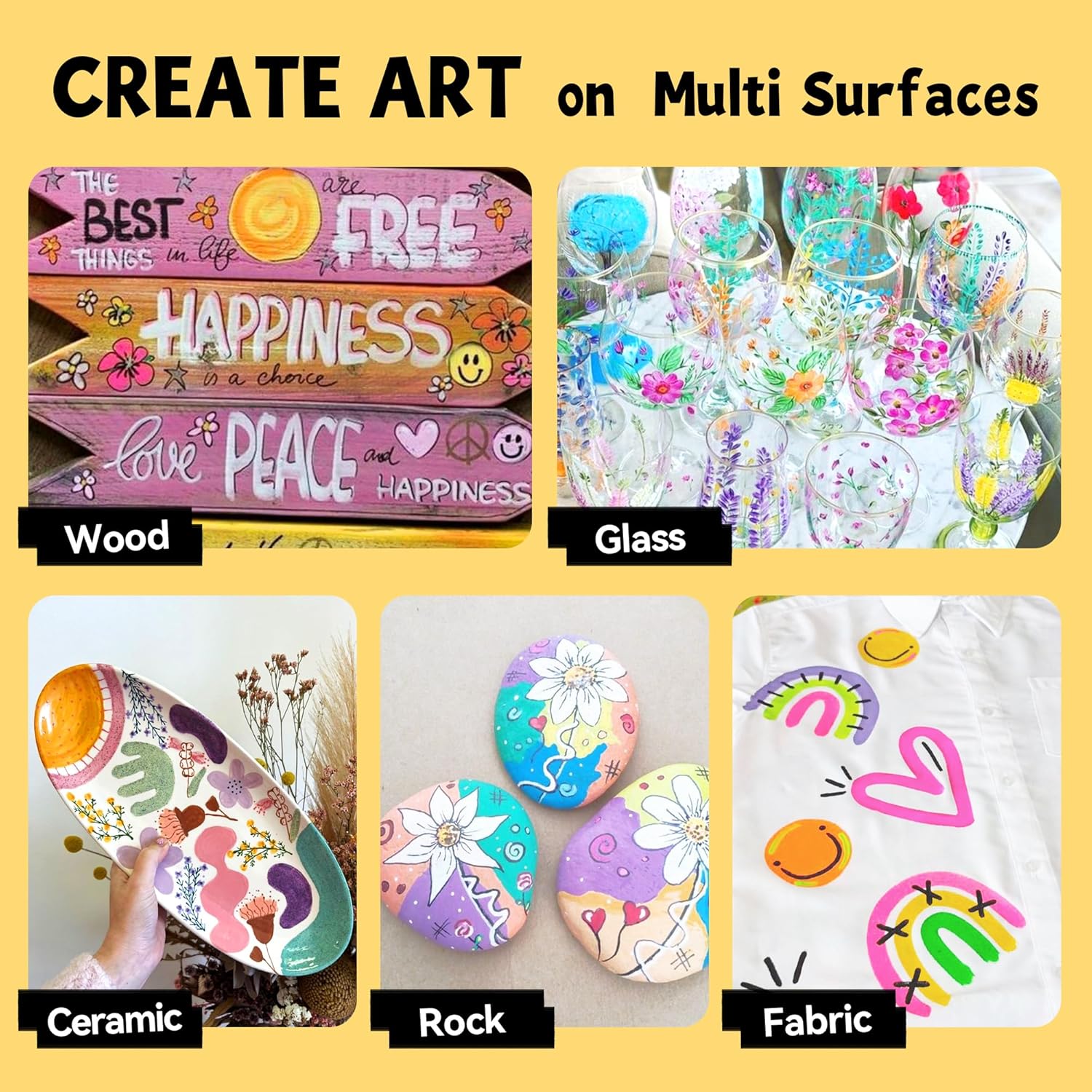 • Non-Toxic and Safe – SRUOLOC paint markers are non-toxic, Each thick permanent marker meets ASTM d-4236 and EN-71 safety standards, are suitable for artists of all ages, working seamlessly on rock, fabric, glass, wood, plastic, paper, and more
