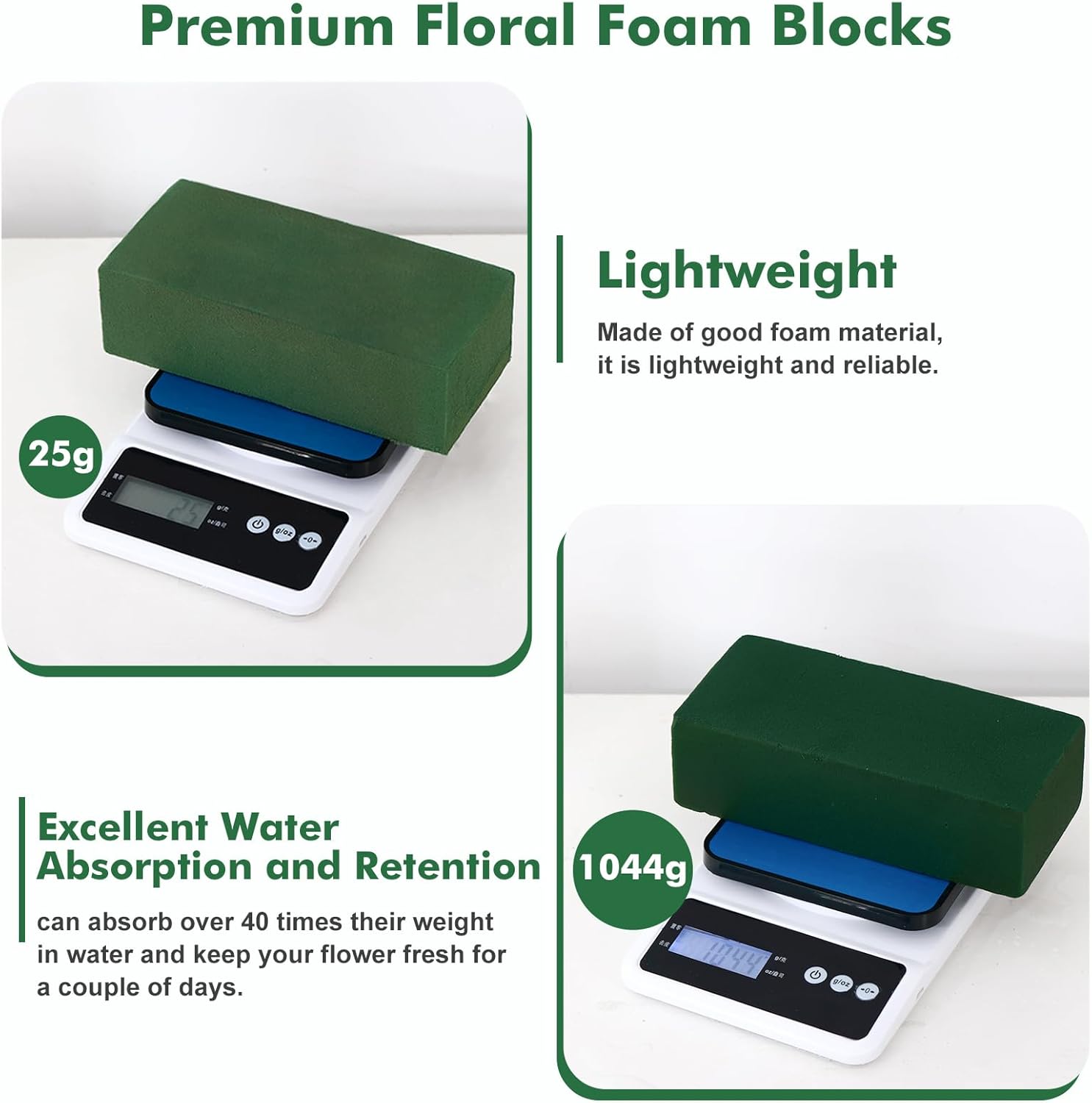 • Absorbs & Retains Water Well: These floral foam blocks can absorb water quickly and thoroughly, and retain water well. They can absorb over 40 times their weight in water and keep your flower fresh for a couple of days.