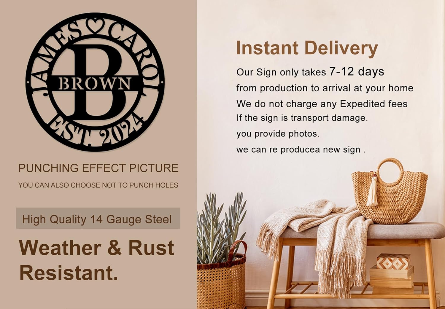 • Metal Construction: Our family name signs are made from high-quality metal, ensuring longevity. These metal signs hold up well over time, even in the toughest conditions, making them perfect for both indoor and outdoor use.
