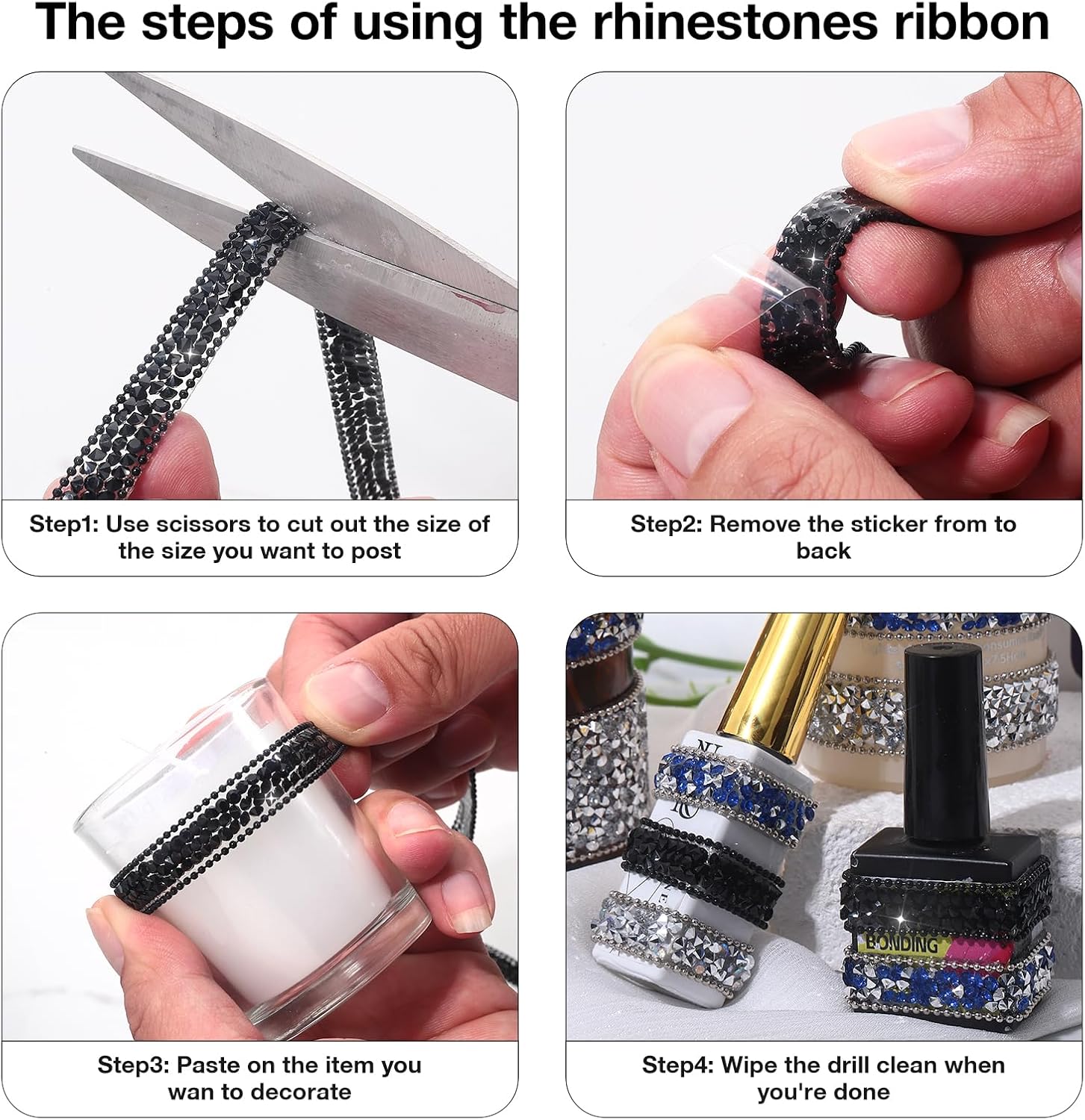 • Black Rhinestone Ribbon: 1 roll of self-adhesive rhinestone ribbon Sticker, approx 3 yards in length, 1cm/0.4inch in width. (PACKAGE CONTENT)