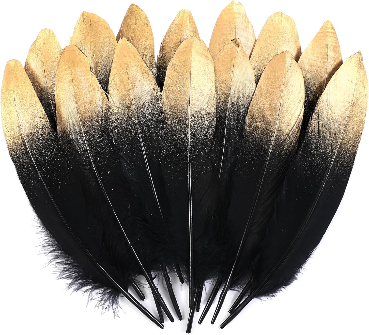 Larryhot Dipped Gold & Black Goose Feathers for Crafts - 6-8 inch 60 pcs Natural Feathers for Wedding Party Decorations,DIY Crafts and Clothing Accessories (Gold & Black)