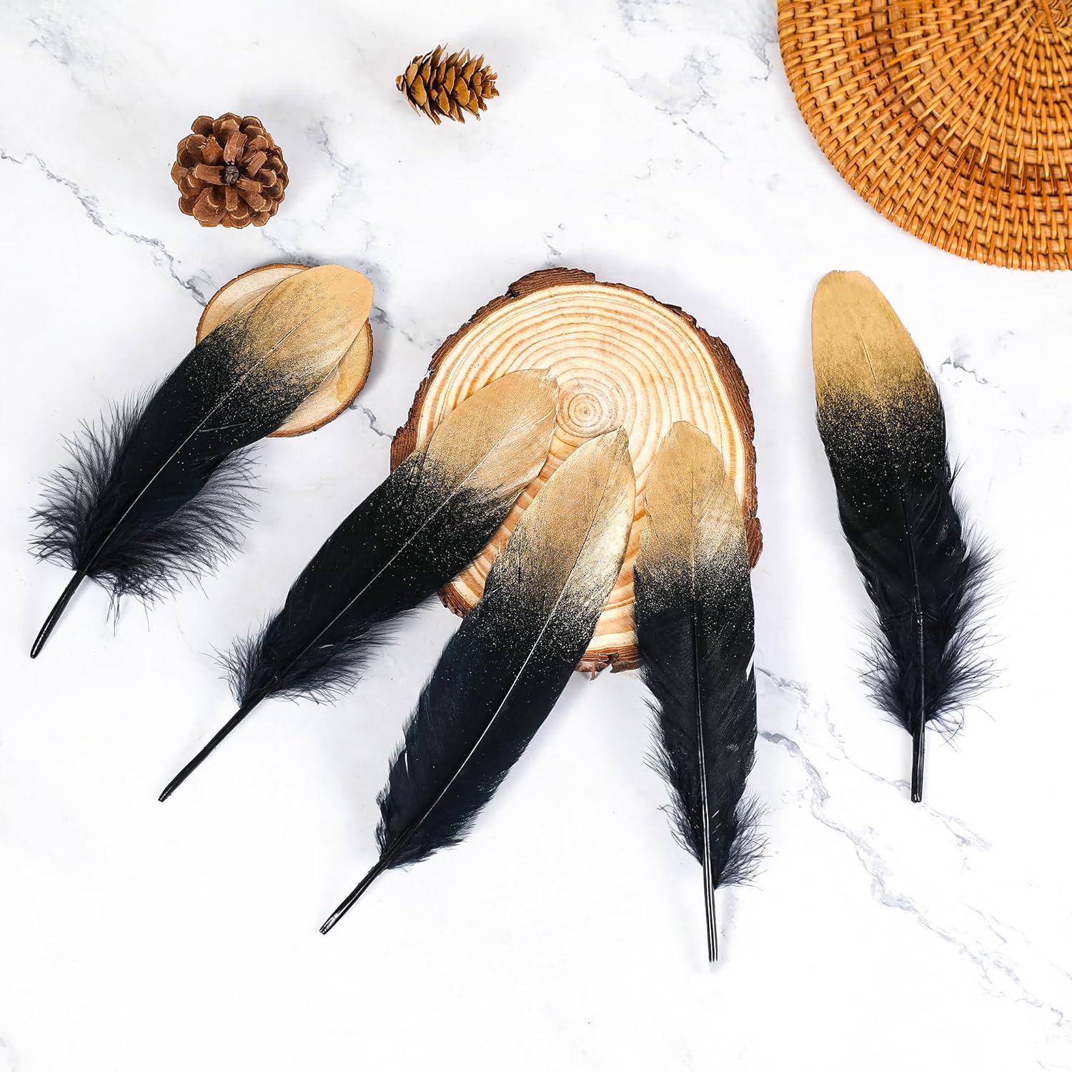 • Unique Dipped Gold Design: This golden feather is permanent and hand-picked to be scratch-resistant and colorfast. Glittering feathers, is a great choice for craft lovers