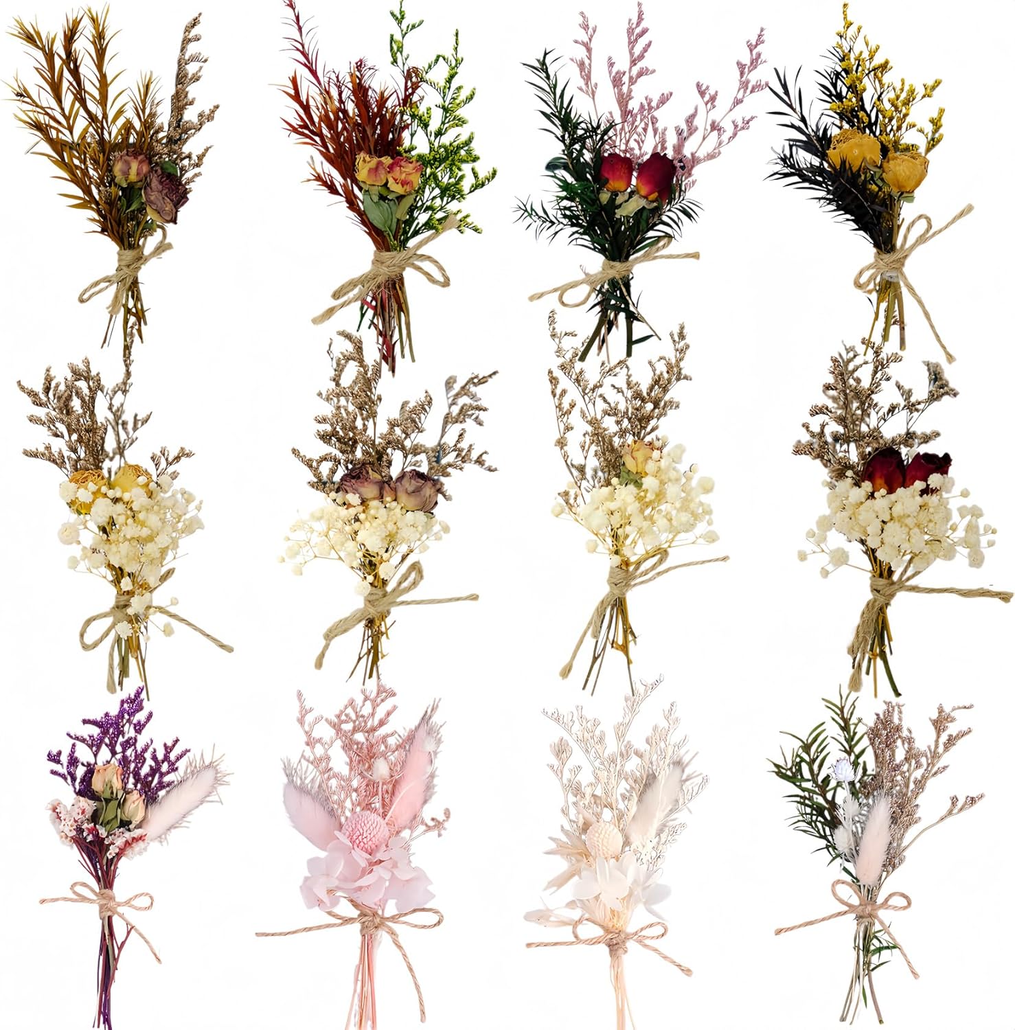 CROISSANT Mini Dried Flower Bouquet 12PCS, Mixed Natural Dried Flowers Bundles, Suitable for Handmade DIY Greeting Card Decoration, Multi-Purpose Craft Flowers