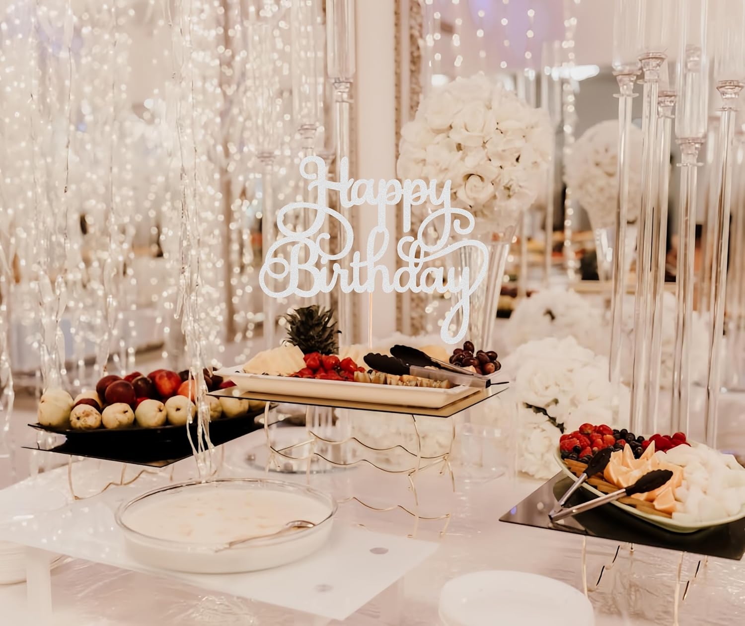 • HIGH QUALITY CARDSTOCK - Each happy birthday cake topper is made of silver 350GMS thick cardboard, which is sturdy and durable, effectively preventing damage during transportation. This happy birthday cake topper is a true silver flash that shines from every angle, providing a unique touch and illuminating the entire gathering venuedecor