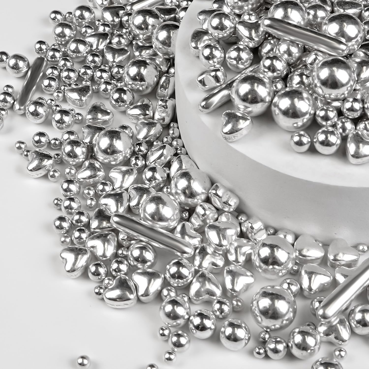 • Silver Pearl Rods Hearts Sprinkles bring a sweet and romantic element. These sprinkles are easy to use and can be applied to a wide variety of baked goods. They can be used to decorate the tops of cakes, add a decoration to cupcakes, or sprinkle on cookies and more.