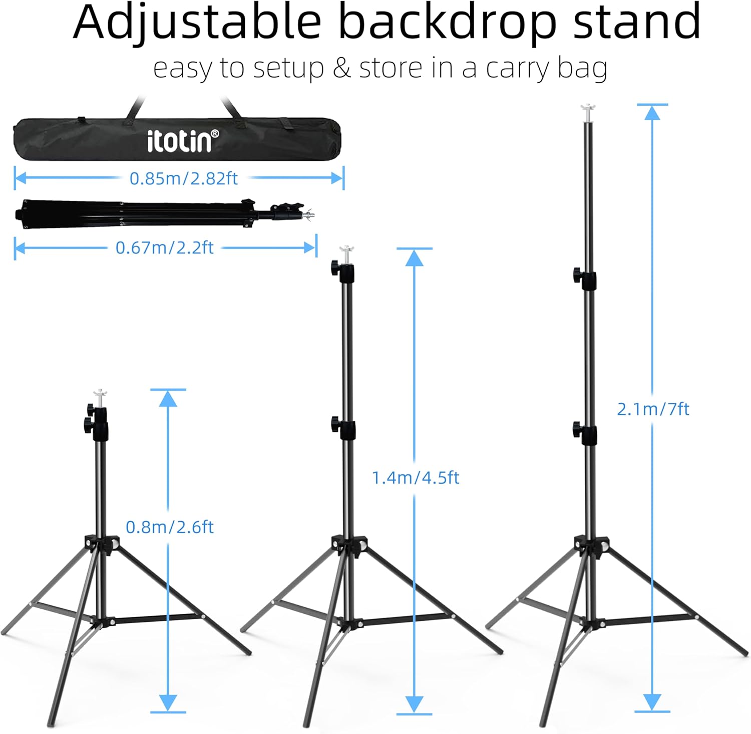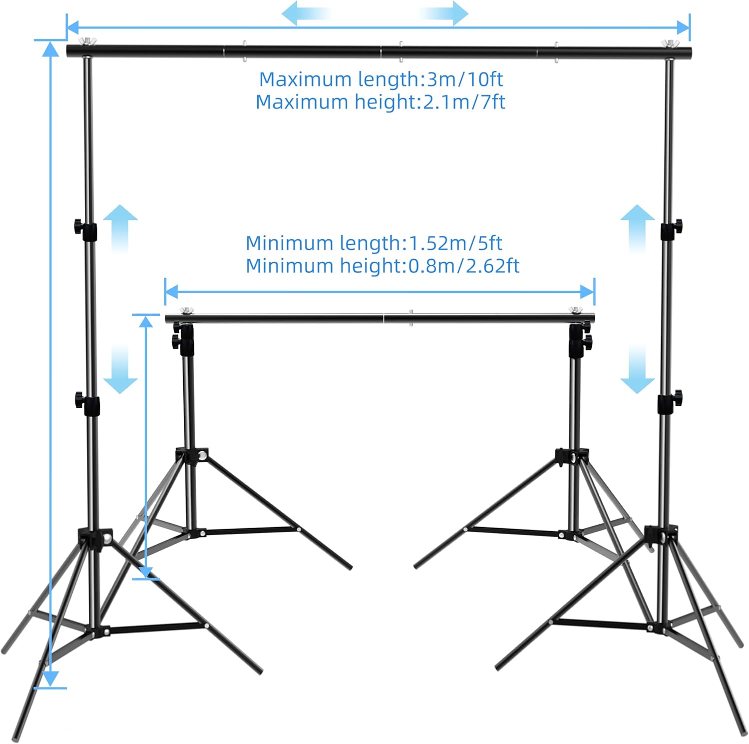 • 【Adjustable Height Stand】 The background stand is height-adjustable, with a minimum height of 2.6 feet and a maximum height of 7 feet.