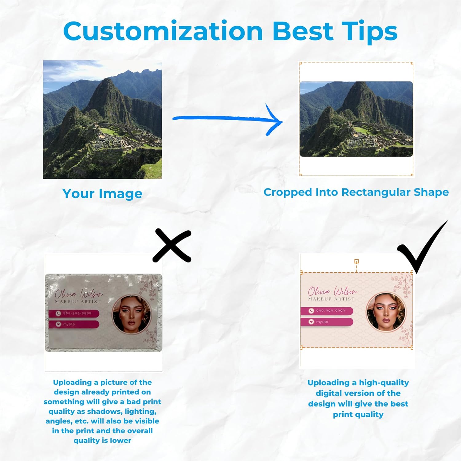 • How to Customize — By clicking on "Customize Now" you can access the customization options available. You can add your own design, or choose from our pre-made business templates and add your text. To ensure a good print quality, please make sure the image that is uploaded is a digital version of the design in a high-quality, 300 DPI file. Feel free to let us know if you have any questions about the final result or how to personalize your customizable magnets.