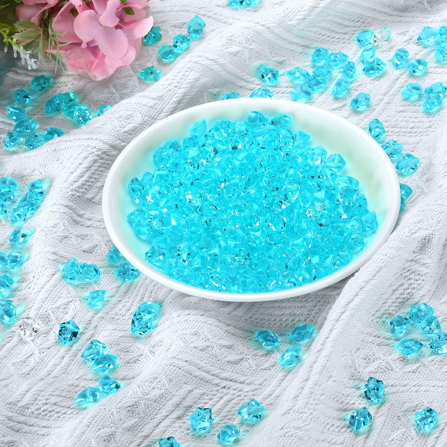 uxcell 1000pcs Fake Ice Rocks, Dazzling Clear Resin Crushed Ice Sparkling Fake Diamonds Gem Stones for Vases Fillers Table Scatter, Theme Party Favors, Light Blue