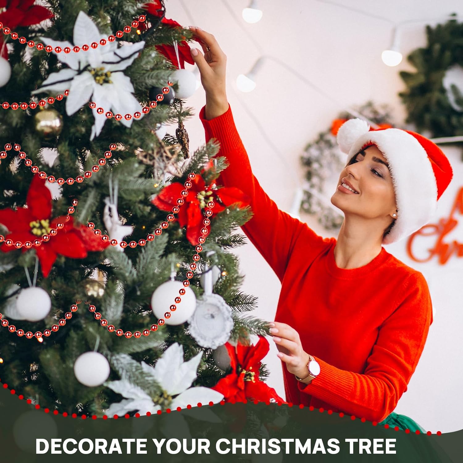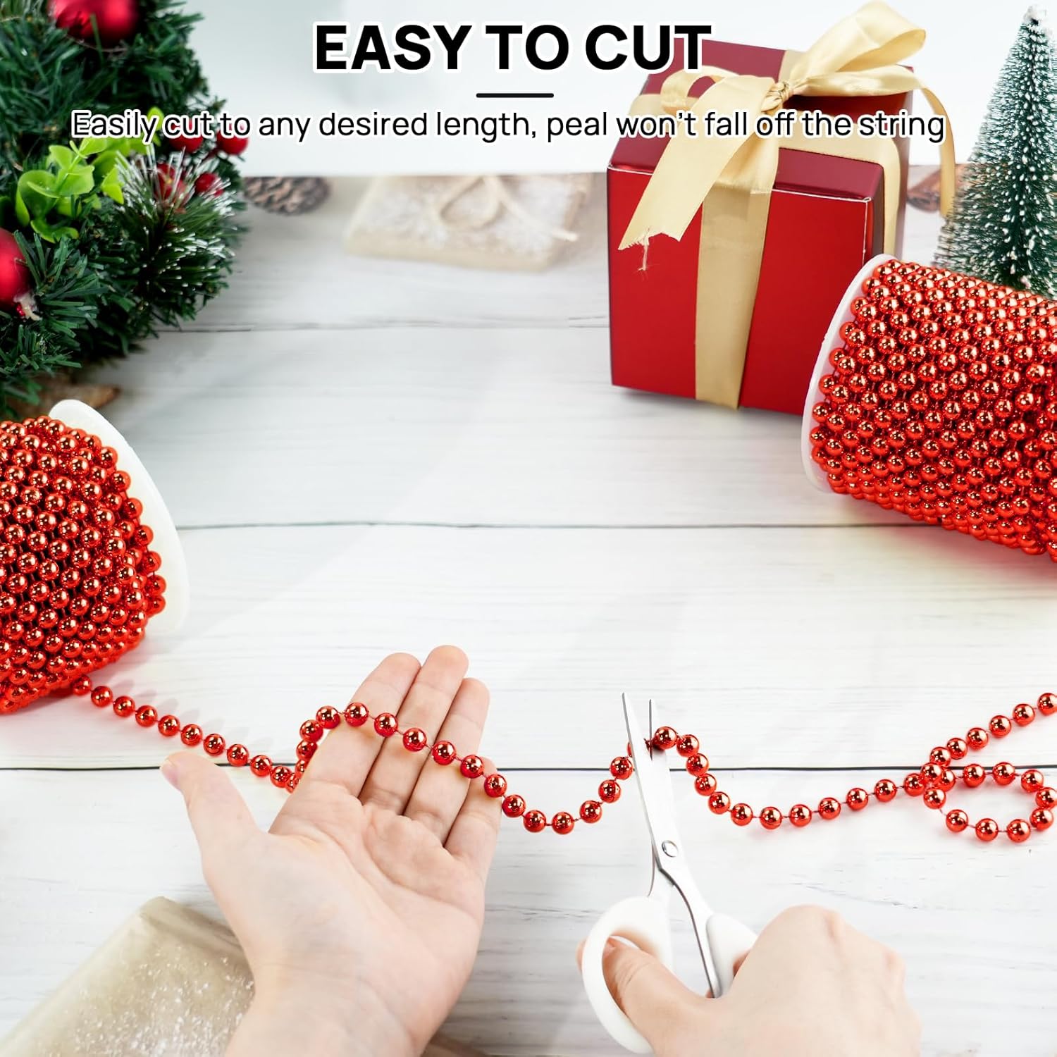 • Red Pearl Garland - Our string of pearls is 33 feet/11 yards long per roll. Diameter of red bead: 8mm. We have pearl garlands of different colors and sizes, you can choose according to your needs!