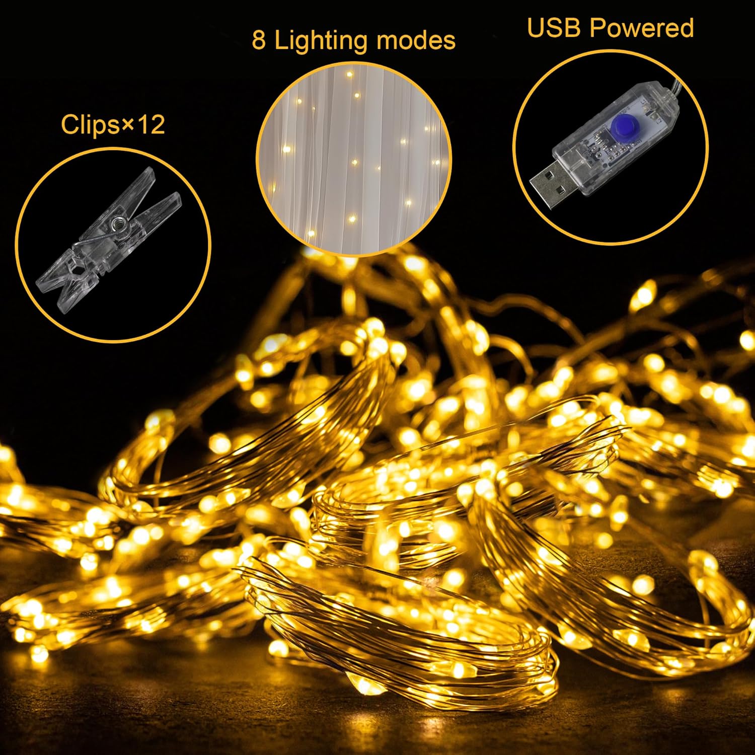 • Package Includes: The package includes 2 panels white sheer tulle backdrop curtains, each curtain backdrop is 5FT width and 10FT height. Also it includes a set of 10FT (10 strands) warm string light (USB Powered) and 12pcs transparent clips.