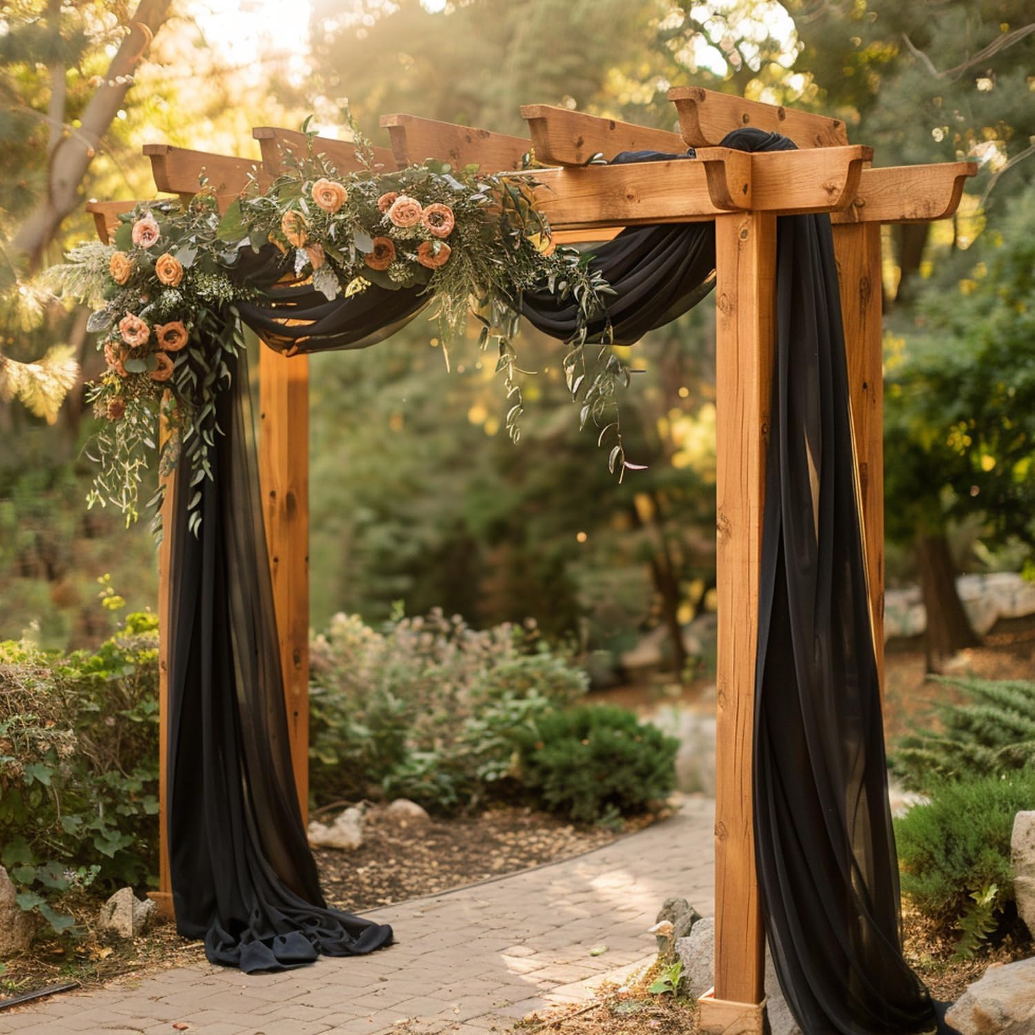Wokceer Wedding Arch Draping Fabric - 6 Panels, 28.7" x 20FT Black Sheer Drapes for Wedding Ceremony, Birthday Party, Bridal Shower Decoration