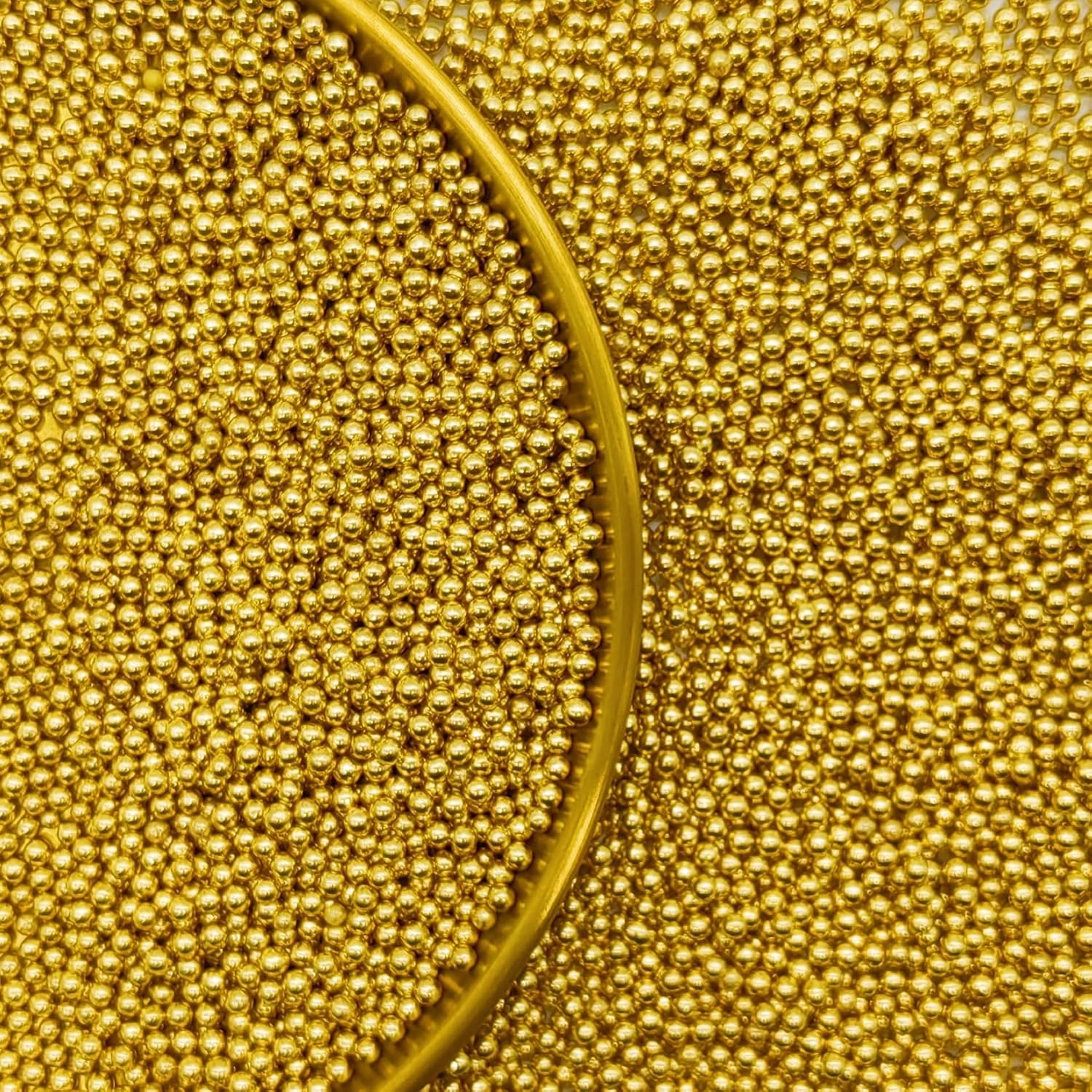 Edible Super Gold Pearl Sugar Sprinkles Candy 2mm Mini Pearls Cake Decorations Cupcake Toppers Cookie Decorating Perfect for Wedding Party Valentine Halloween Christmas Supplies 3OZ