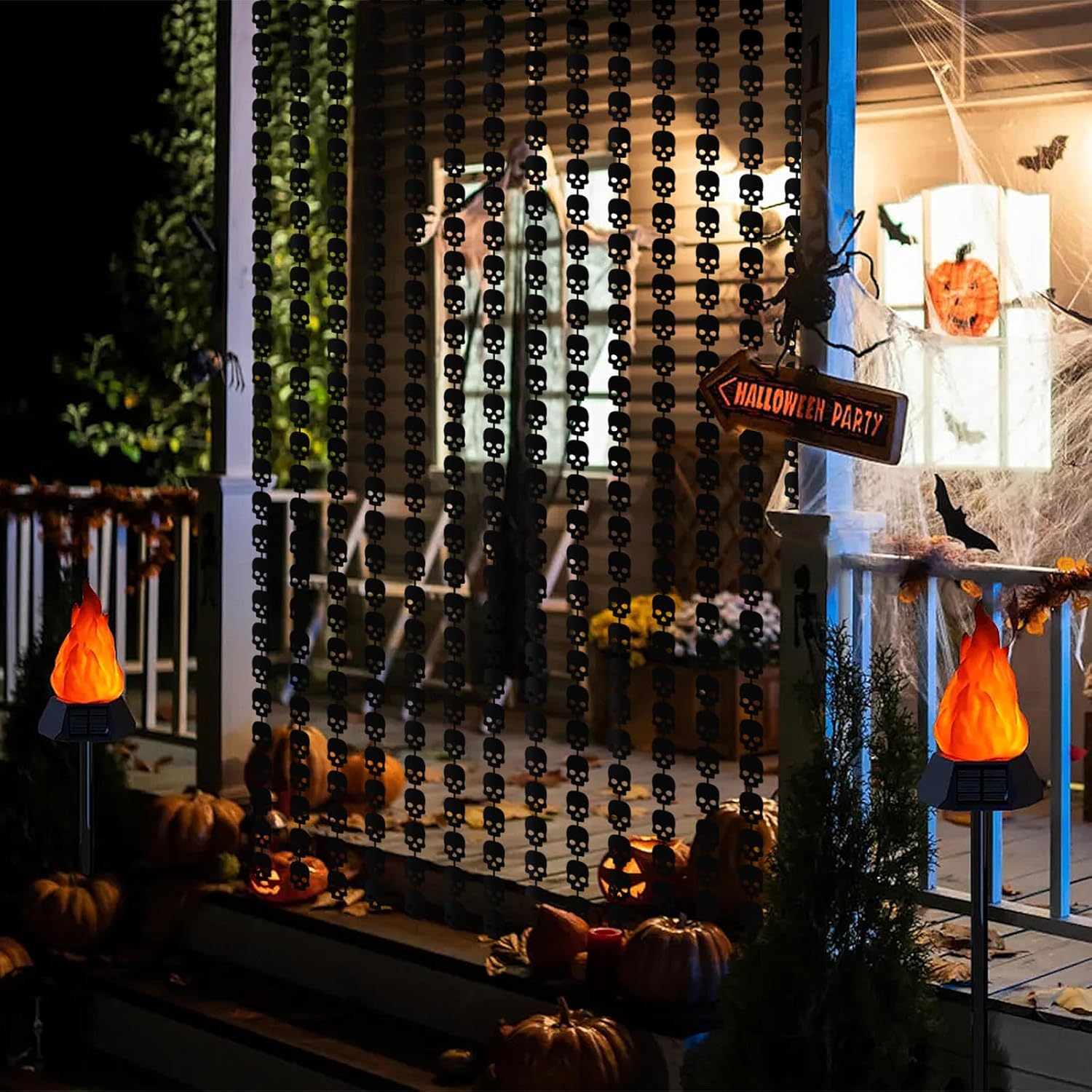 • PACKAGE INCLUDED : 2 pack of black Skull foil fringe curtains, the size of each tinsel curtain is 3.2 ft x 6.5 ft, enough length for hanging on a door or covering a wall fully, suitable for any parties.