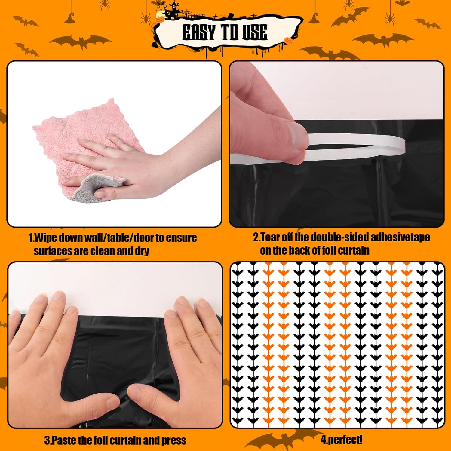 • PREMIUM MATERIAL- This Halloween black and orange bat tinsel backdrop is made of high-quality shiny tinsel, non-toxic, odorless, and non-fading, safe for families with children and pets. Just transform your home into a shining streamers happy birthday decorations, and enjoy the party.
