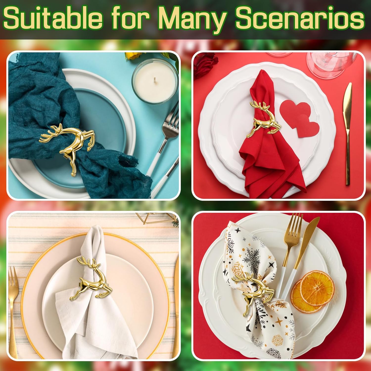 • Santa Bling Napkin Rings: You will receive gold deer napkins rings set of 12, simple and elegant, delicate and romantic, suitable for Christmas napkins cloth of different colors and materials. The reindeer Christmas decoration napkins rings could add more festive atmosphere to your Christmas table decorations for dinner party and become a highlight