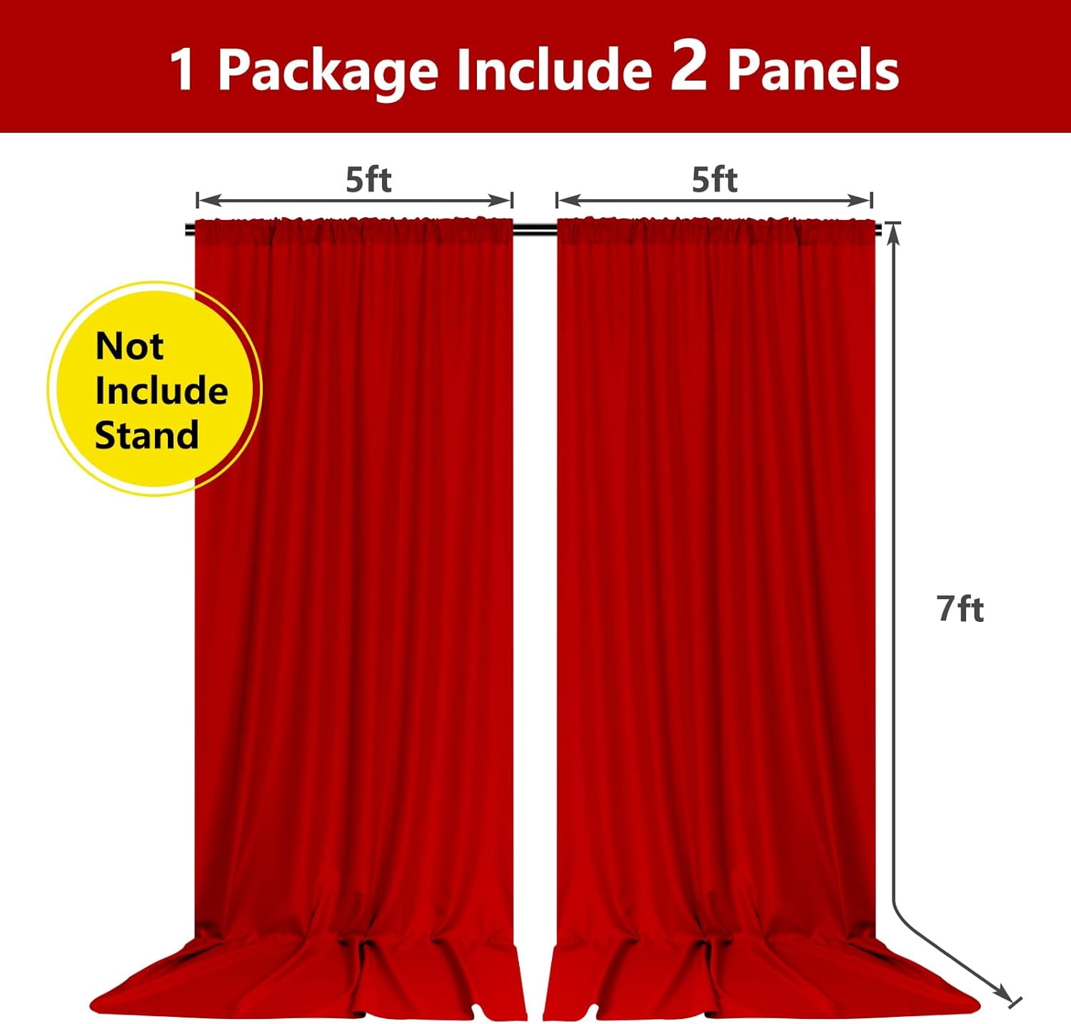 10ft x 7ft Red Backdrop Curtains for Party Valentine's Day Arch Stage Wedding Ceremony Curtains Fabric Photography Backdrop for Baby Showers Rod Pocket Home Decoration, 5ft x 7ft, 2 Panels