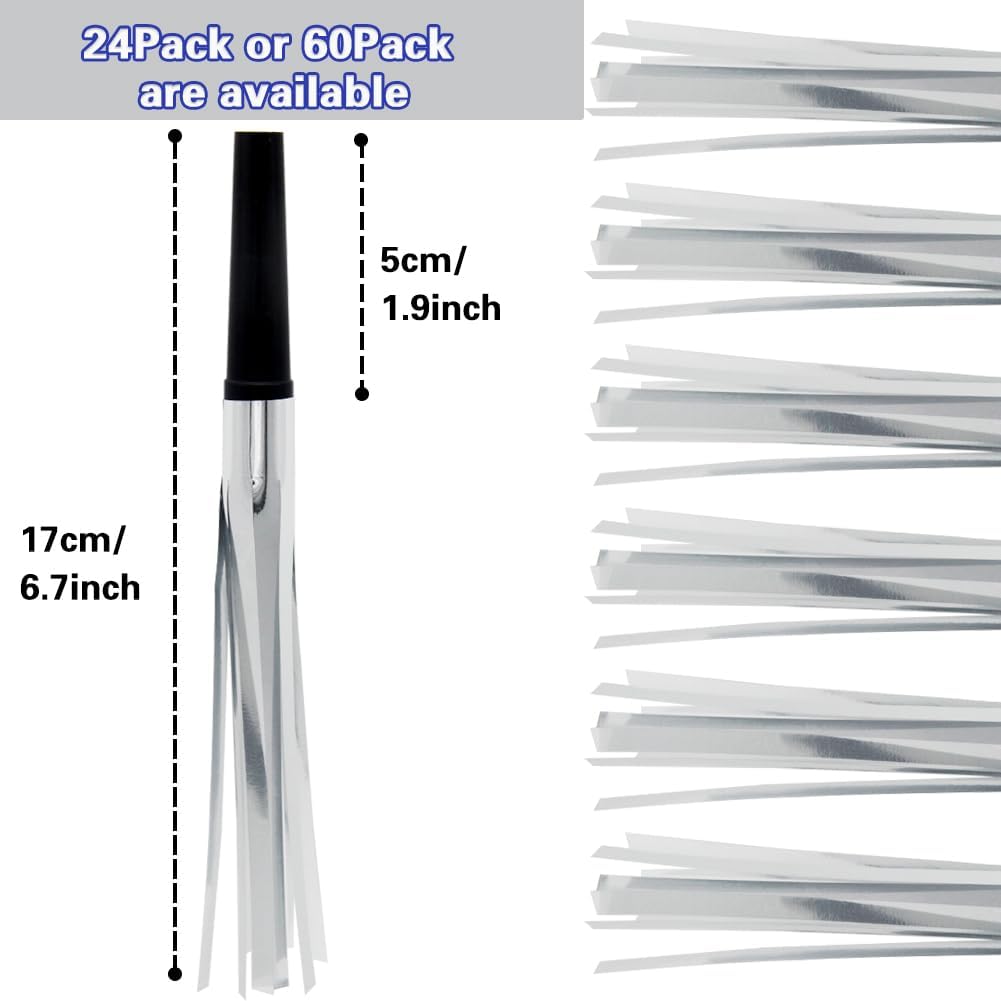 • PACKAGE DETAILS: You will receive 60 pieces silver glitter metallic fringed noisemakers; 6pcs blowsout horns are packed in a bag, total of 10 bags; Sufficient quantity for replacement