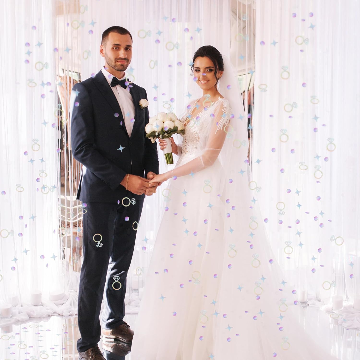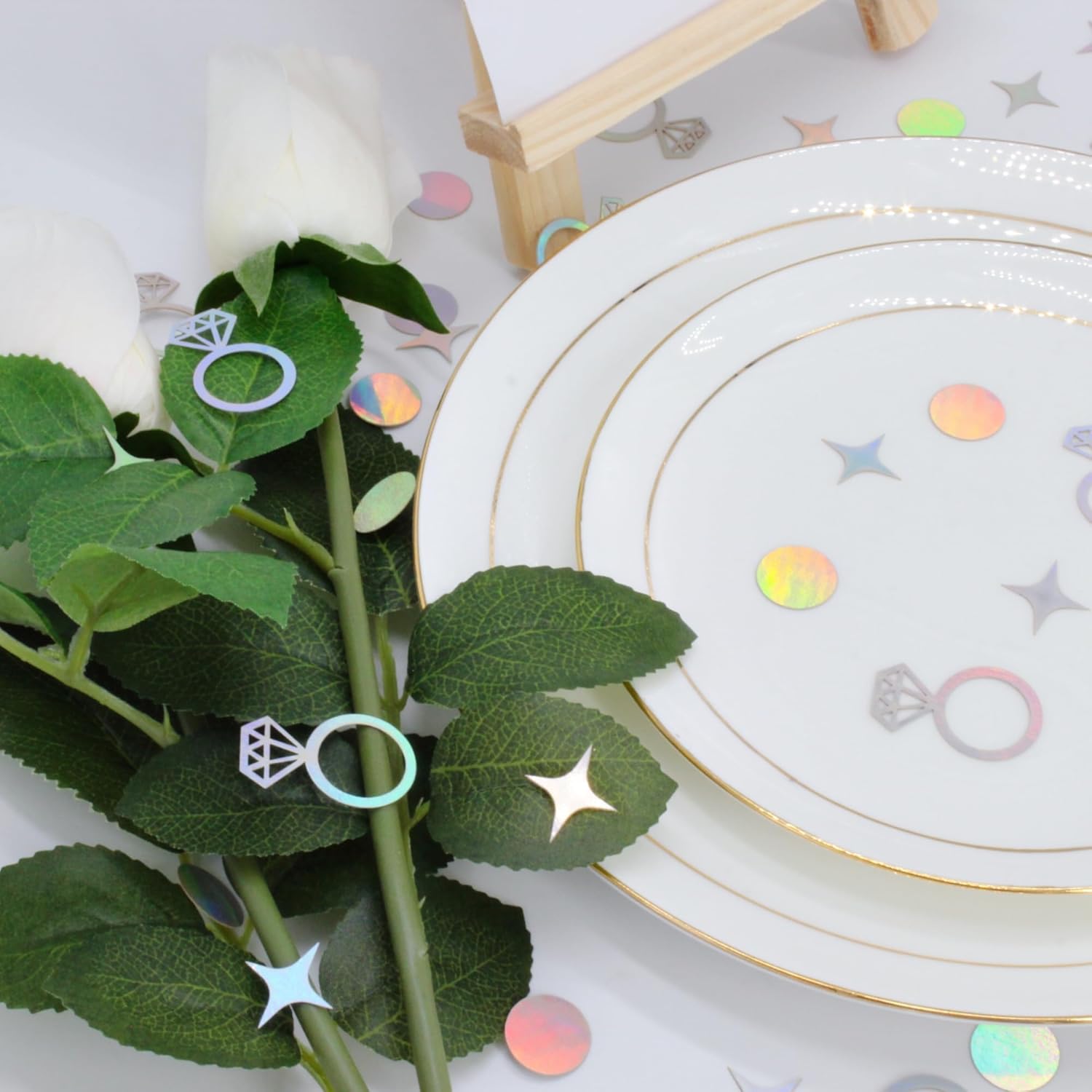 300 PCS Iridescent Bachelorette Confetti, Engagement Confetti Wedding Shower Table Decorations, Ring Table Scatters for Bridal Shower Decorations