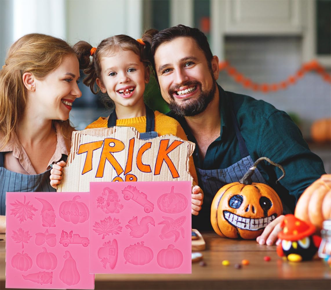 Thanksgiving Day Fondant Mold Halloween Fall Leaf Pumpkin Chocolate Candy Fondant Silicone Mold,DIY Cookies Candy Gummy Chocolate Mold Ice Cream Tray for Holiday Party Thanksgiving Day 2Pcs