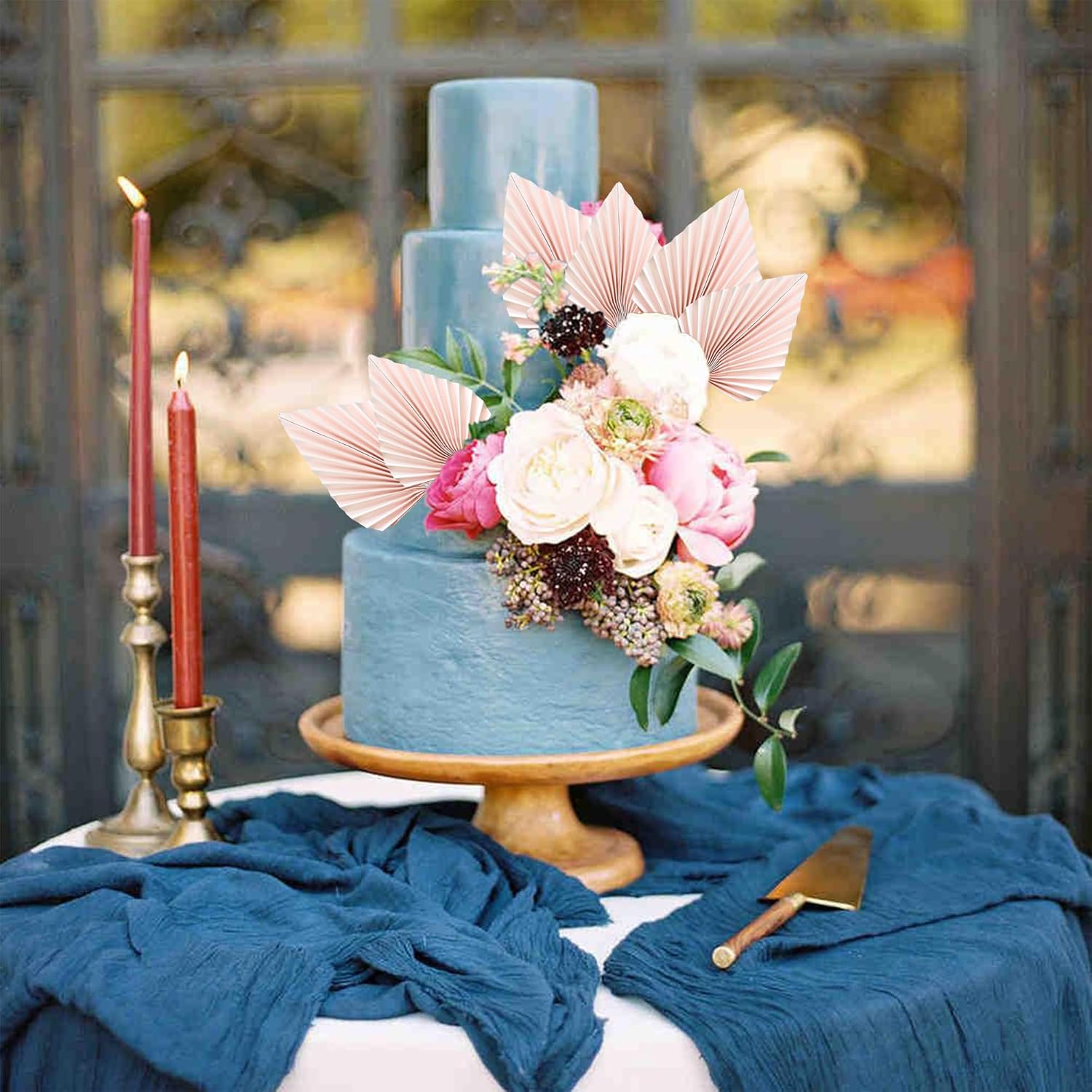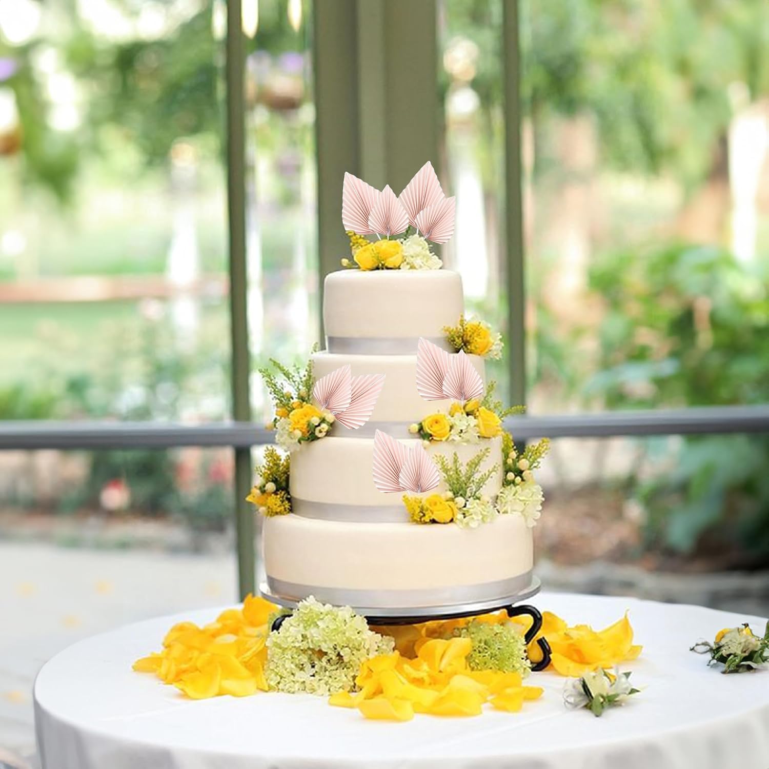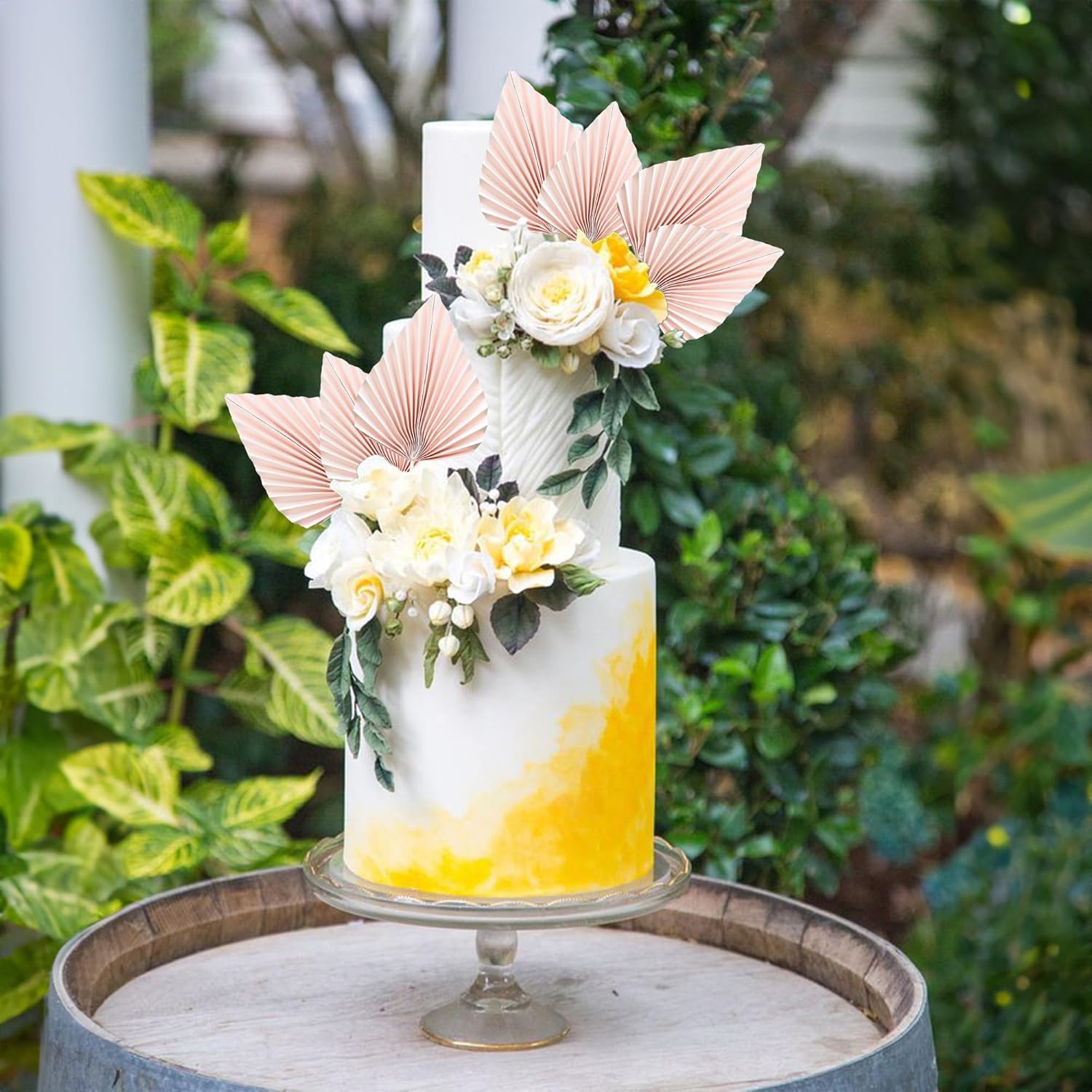 Ephlyn 6Pcs Paper Palm Fan Cake Topper Palm Spear Leaves Fan Cake Pick DIY Insert Cake Decorations for Baby Shower Wedding Bridal Shower Birthday Anniversary Party Supplies Pink
