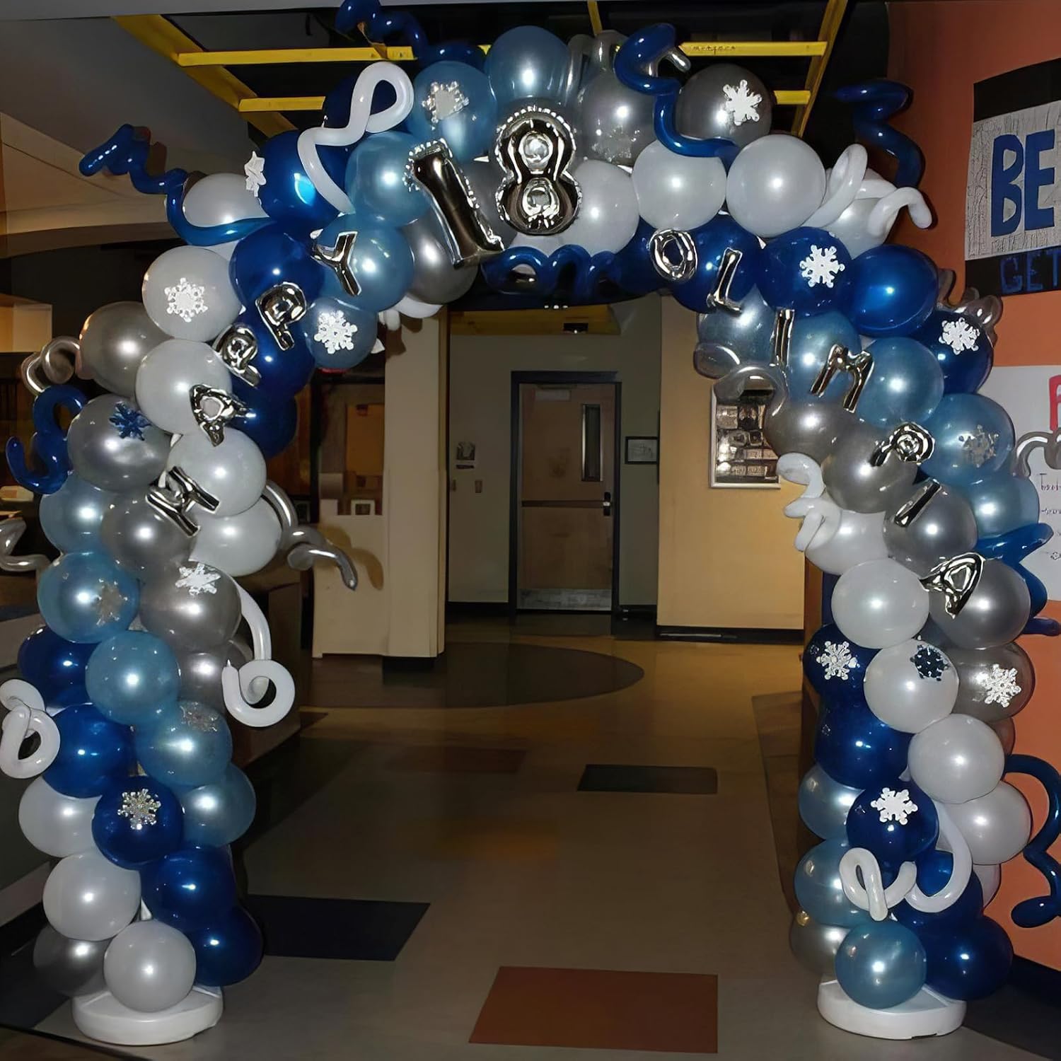 • 12 inch Blue and silver Balloons Set: 8pcs metallic blue balloons, 8pcs metallic silver balloons, 12pcs pearl white balloons, 10pcs star silver confetti balloons, 12pcs pearl light blue balloons, 1pcs silver ribbon in our party balloons set. From birthday to wedding, make your events unforgettable with our top-notch, reliable balloons that add a touch of elegance and fun.