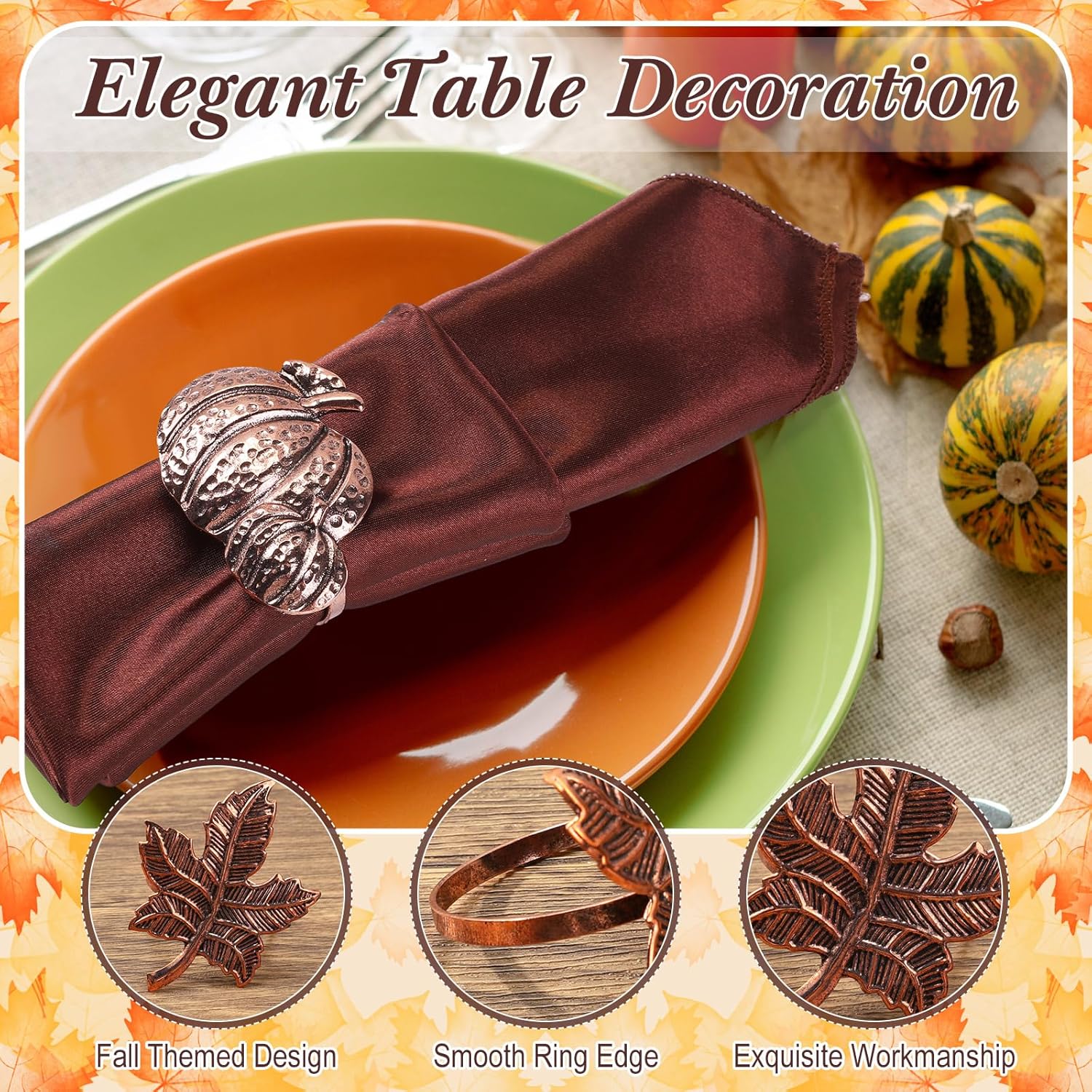 • Multiple Styles: harvest fall napkin rings set include leaf style and pumpkin style napkin rings, different shapes, a variety of styles to meet your decorative needs, a set of theme style is very suitable for Thanksgiving table, use this napkin ring to decorate your table, let guests feel your careful preparation