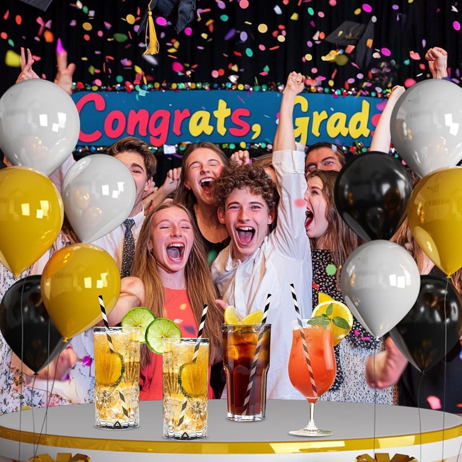 • 【Balck Stripes Design】Sip in style with our classic black and white striped spiral paper drinking straws, perfect addition to daily drinks, graduation parties, black tie parties, bachelor party, halloween