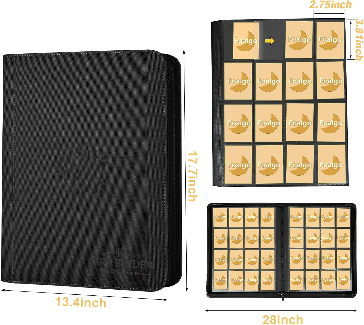 Trading Card Binder 16 Pocket, Foalgo PU Cover Card Binder for 1000+ Cards, Premium Trading Card Holder Folders, Double Sided Pocket Card Album for MTG, TCG (Black)