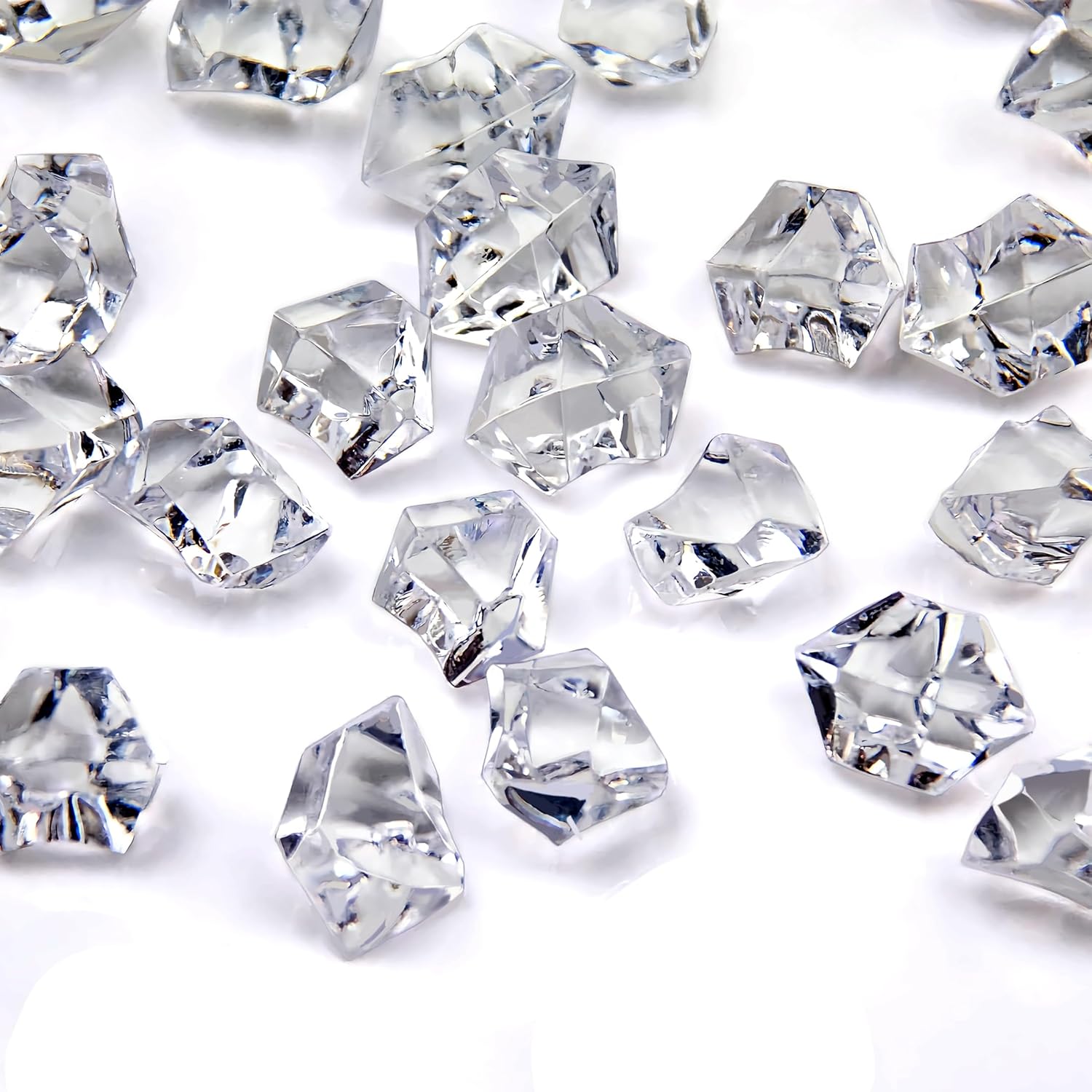 190Pcs Clear Vase Fillers, Fake Crush Ice Rocks Acrylic Diamonds for Wedding Centerpieces Home Party Table Scatter, 0.9 in Plastic Gems for Fish Tank Decor