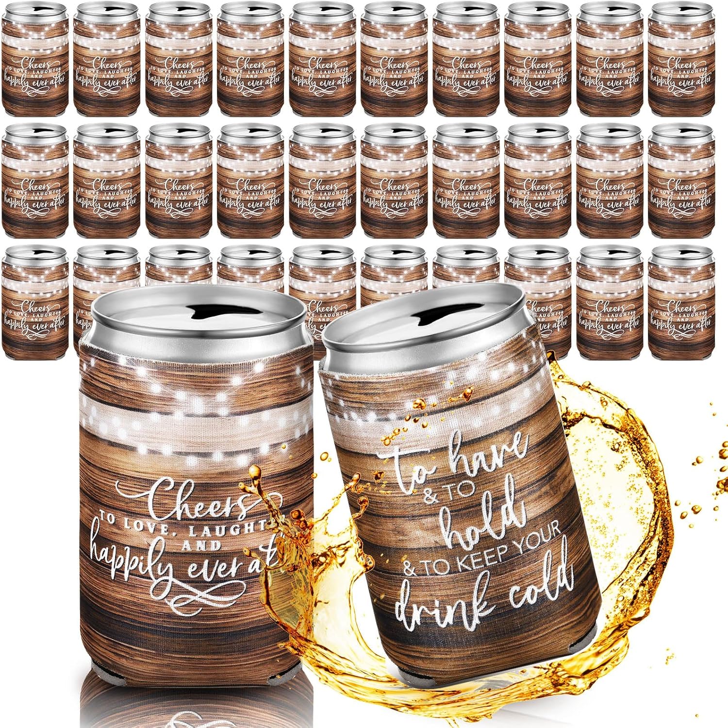 • Satisfying Party Package: our huge package containing 50 pieces of wedding can cooler decorations; Make every drink a celebration with our wood grain and white can coolers; They are suited to uplift the atmosphere at weddings, bridal showers, and bachelorette parties