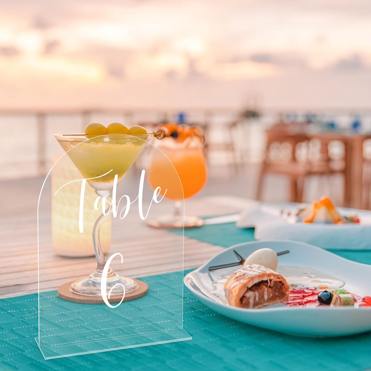 • Elegant Design:Elevate your wedding or event decor with these stylish acrylic table signs featuring a sleek arch design