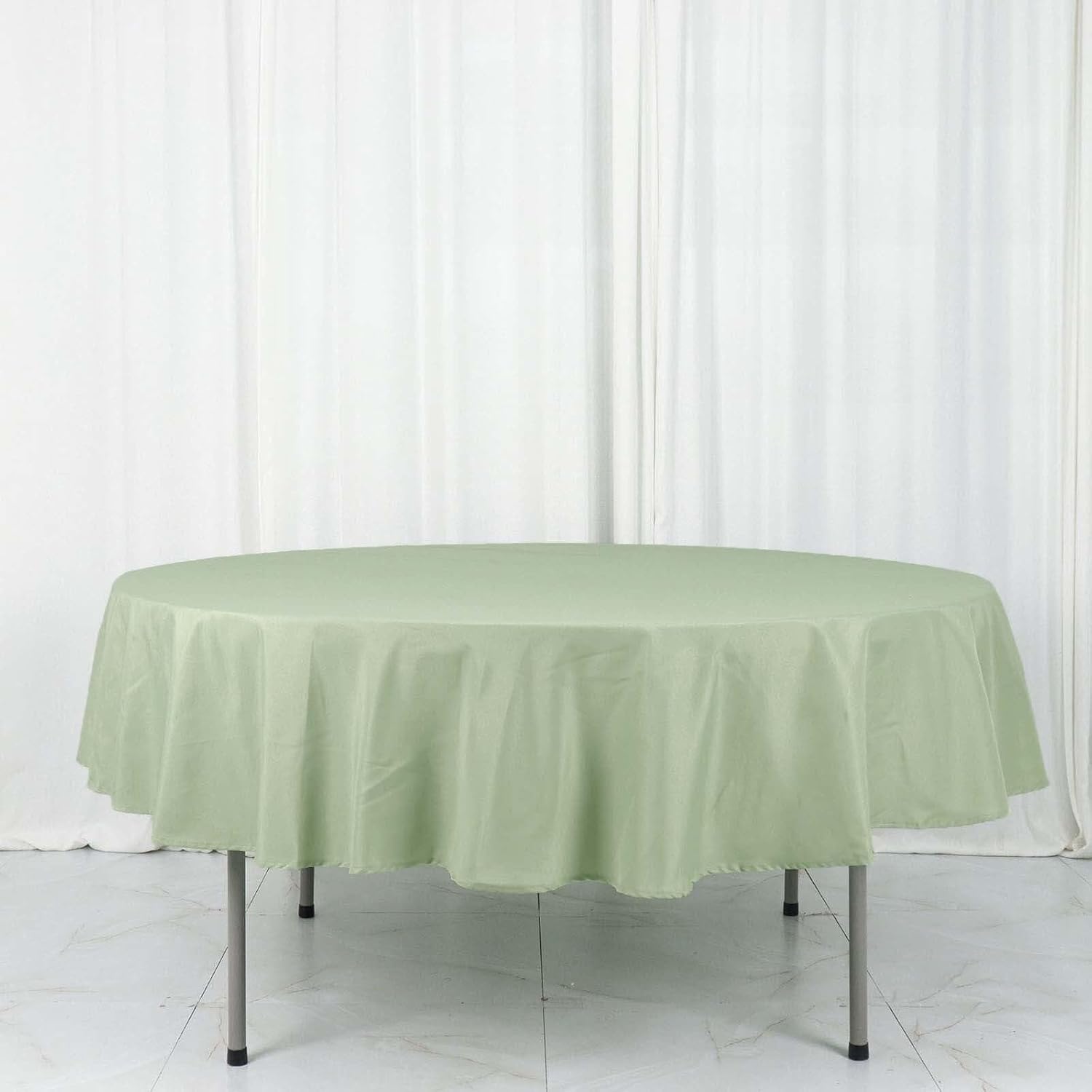 • Quantity: 1 Tablecloth Material: 100% Polyester Color: Sage Green Size: 90" Round 1 piece, seamless design Stain & Wrinkle Resistant, Machine Washable Hemmed edges for an exquisite look.