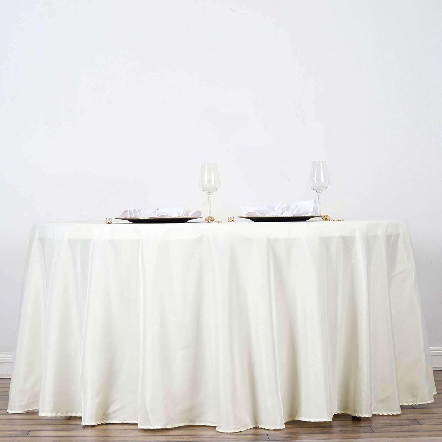 Efavormart Round Tablecloth, 132 Inch Stain & Wrinkle Resistant Washable Table Cloth, Decorative Polyester Fabric Table Cover for Banquet, Wedding, Dining- Ivory