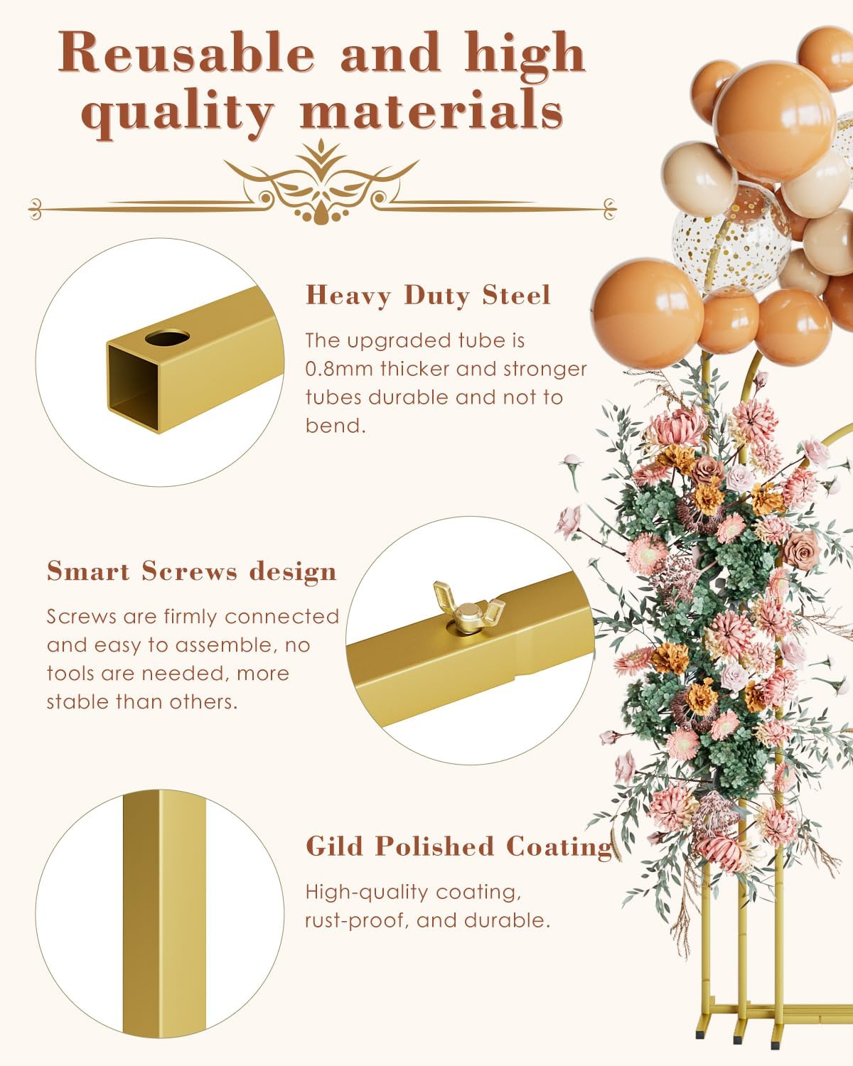 • Easy to Assemble: Our metal wedding arch stands, including a wedding arch frame suitable for balloon arch backdrops, are made of sturdy and lightweight square steel pipes with a bright gold color. With a higher bearing capacity and easy assembly, the arch frames can be quickly put together with screws in minutes. The metal arch backdrop stands are designed for easy disassembly by a single person, making setup convenient and hassle-free for any event.