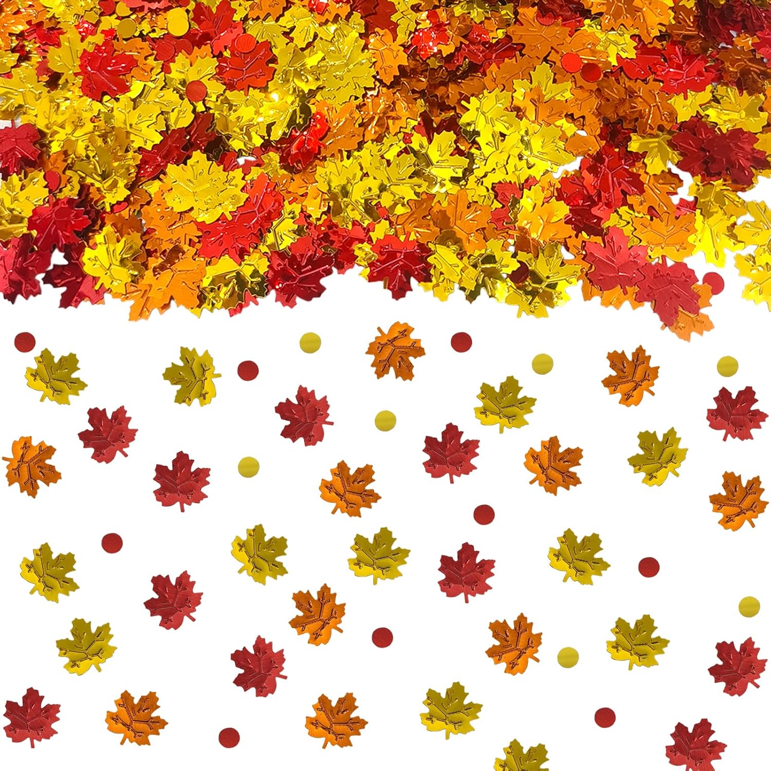 1500 Pcs Autumn Fall Table Confetti, Maple Leaf Decor Harvest Thanksgiving Table Scatters Glitter Party Decorations