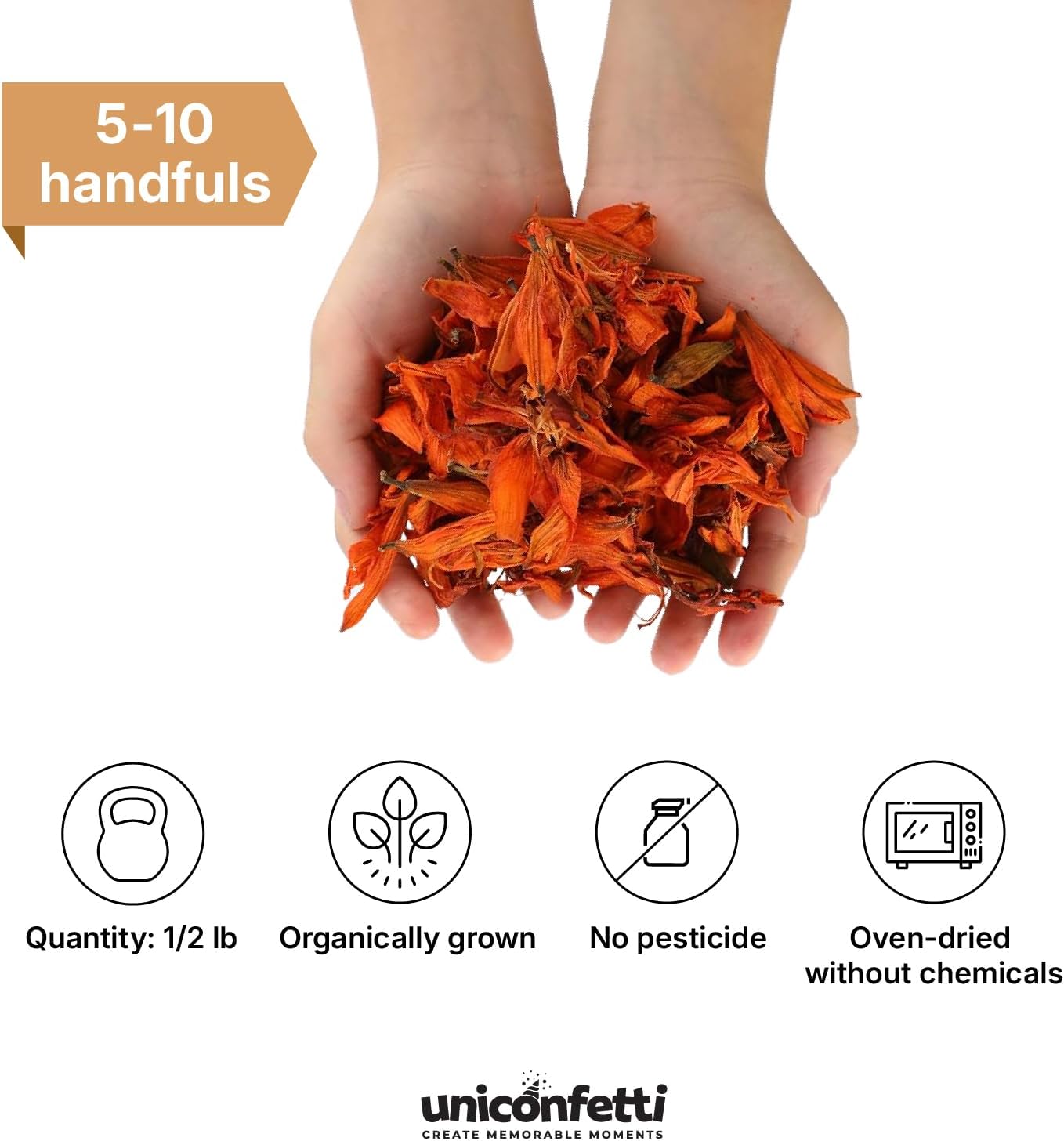 • 🎉 5-10 HANDFULS: 1/2 lbs or 8oz of oven-dried real Yellow Lily Petals. The flowers were organically grown, so no chemicals and pesticides in the petals.