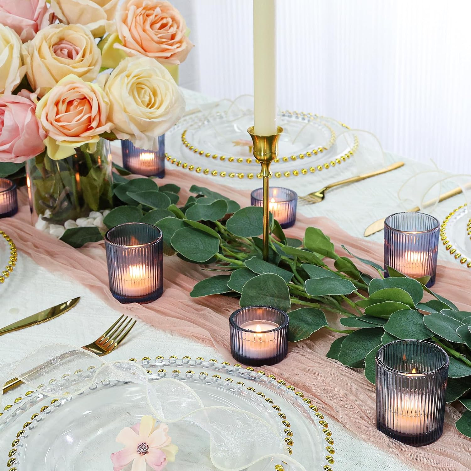 24 Pcs Ribbed Votive Candle Holders, Dark Blue Glass Holders Bulk for Table Centerpiece, Tealight Holders Glass for Wedding Shower, Party and Home Decor