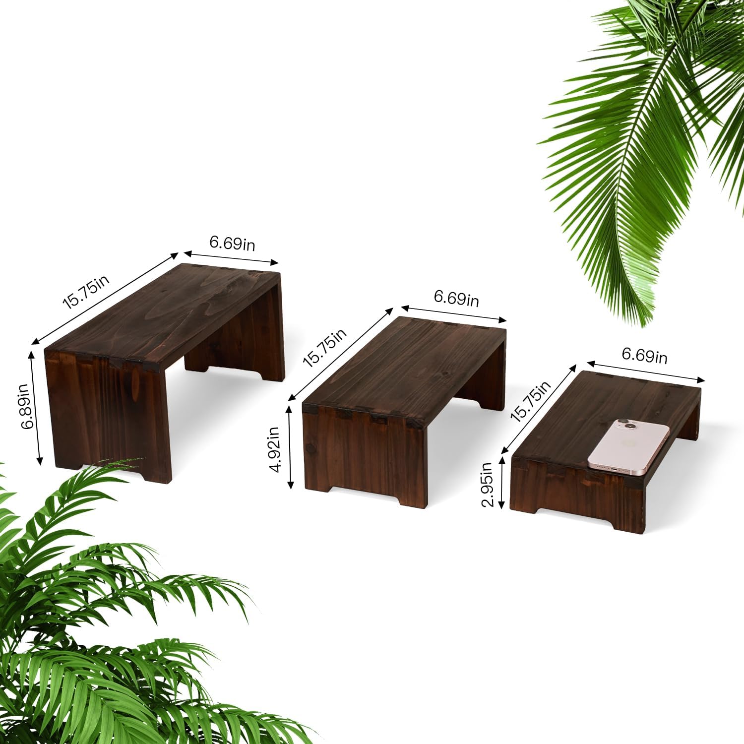 • RUSTIC CHARM & ELEGANCE: Each stand is crafted from high-quality wood with a rich, torched finish, bringing a warm, farmhouse feel to your dessert table. The natural wood grain of these stands beautifully complement your treats, making them the centerpiece of any occasion