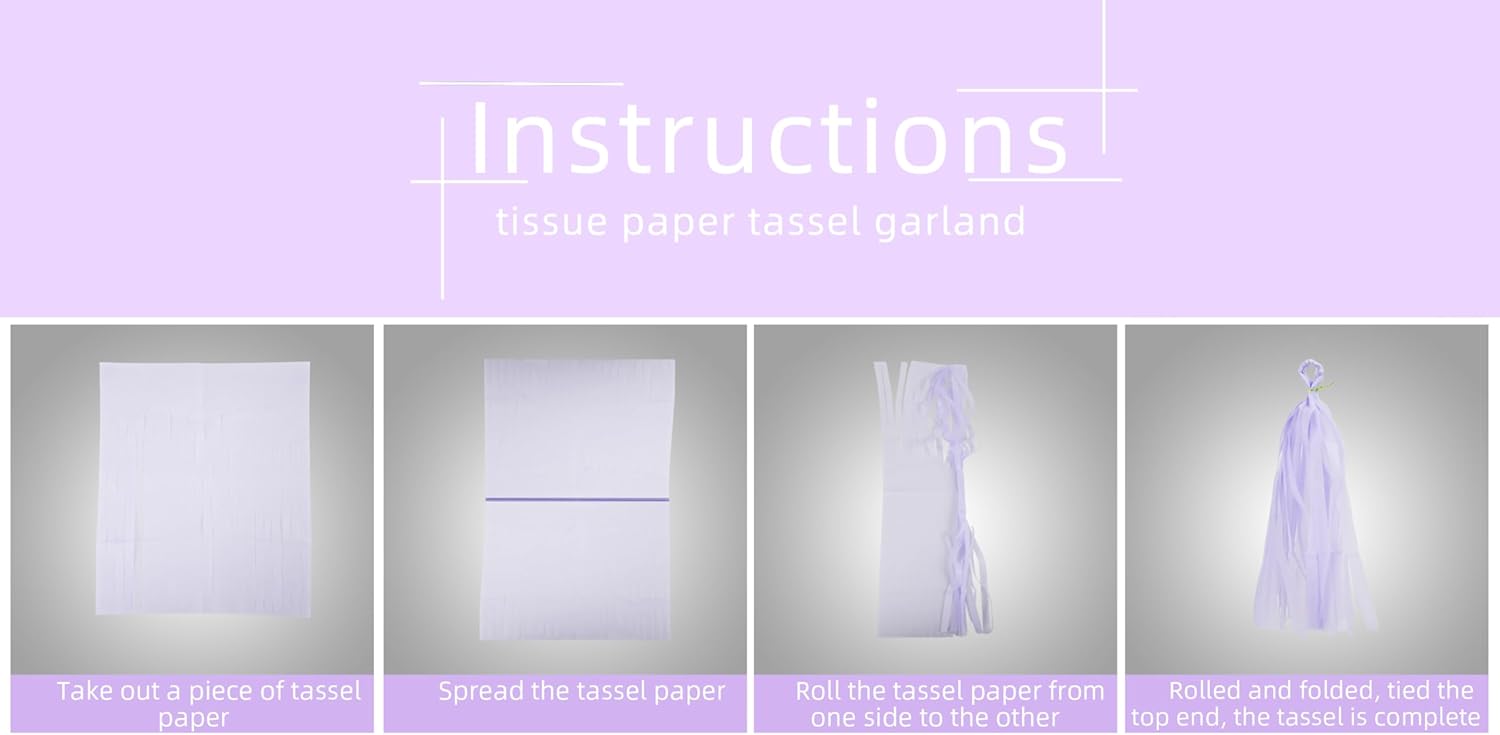 • 【Package Including】The decorations kit include 15pcs tissue paper tassel garland in 3 colors,white light purple,dark purple,each tassel is approx 13.8inches in length