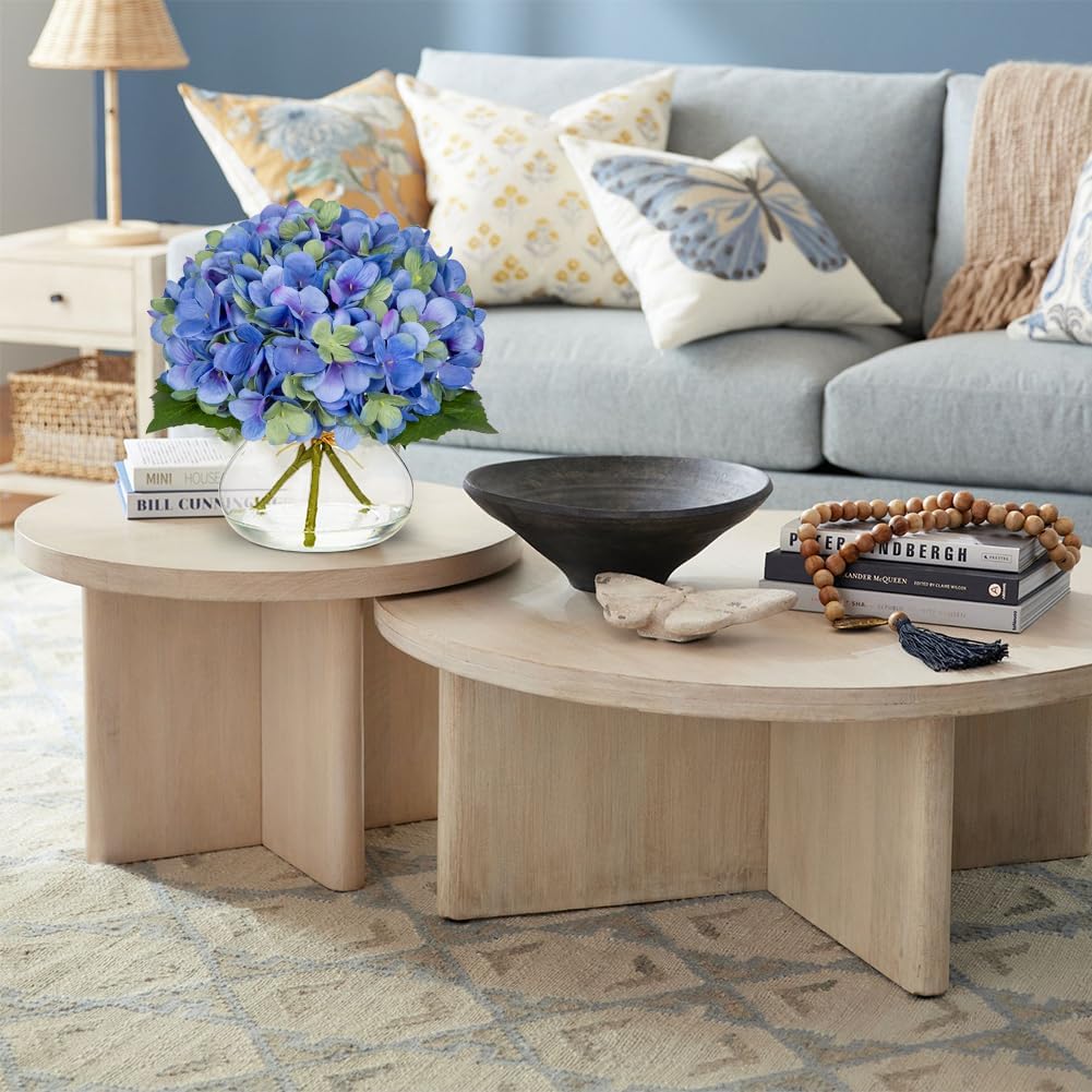 • 💐【Realistic & Elegant】Artificial hydrangea flowers with glass vase suits look so beautiful, unique craft design, brings different visual enjoyment to your home, create a romantic atmosphere, make you happy every day. Faux water on the vase adds to the pulchritude and realism. More realistic because of the details!