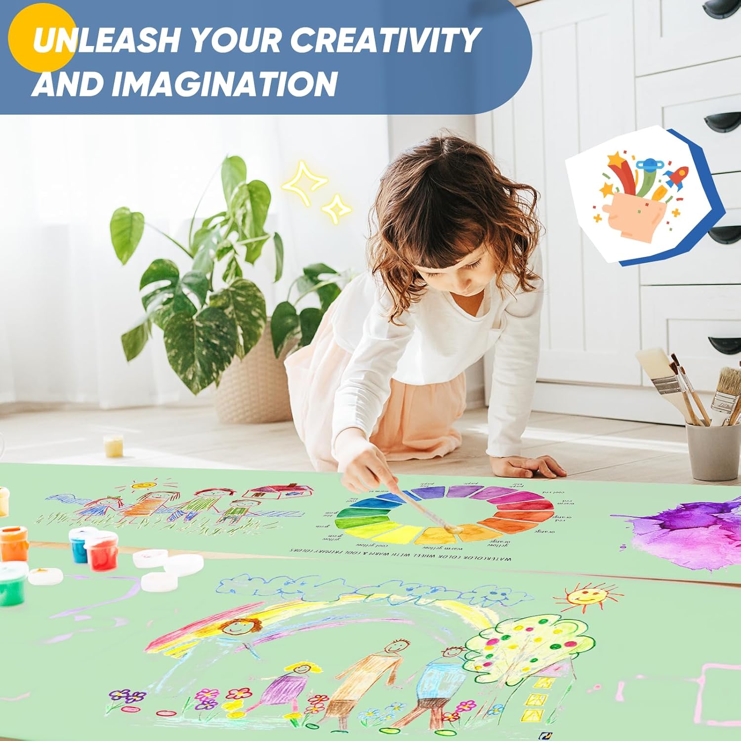 • 【Works with Different Materials】 Our kraft paper is unwaxed and uncoated, which means long-lasting art that won't fade away with time. You can use this craft paper roll with acrylic paints, oil paints, chalk, crayons, markers, gel pens, felt tip pens, fine point pens, watercolors, colored pencils, finger paints and tempera, and there is no smearing or bleeding to protect your table from the different art mediums