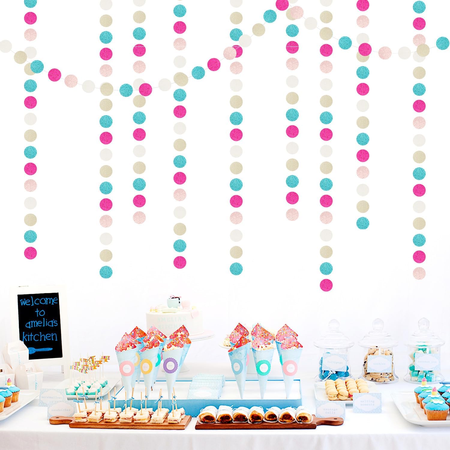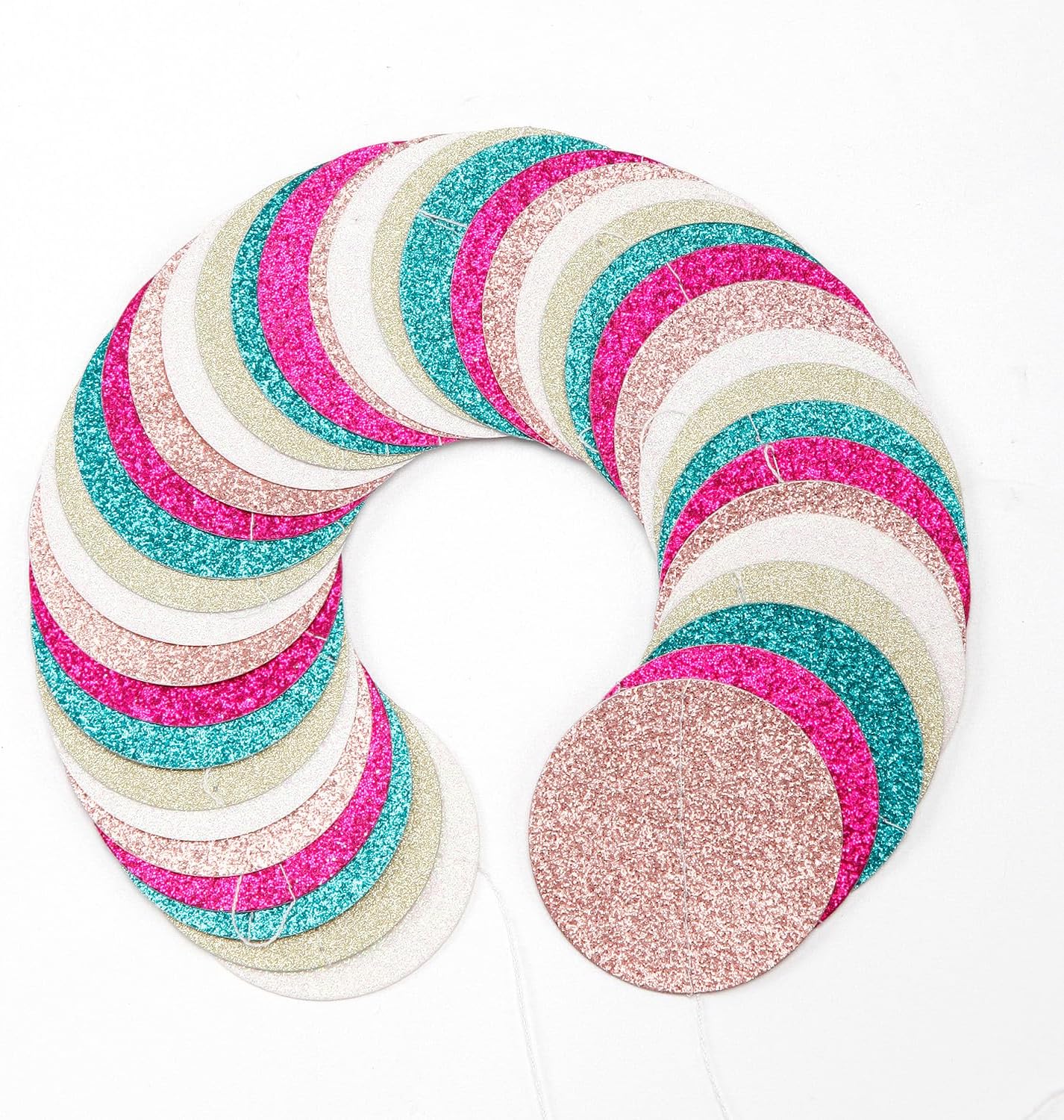 • PACKAGE CONTAINS: This set has four teal rose gold champagne hot pink white circle paper garland,the length of each strand is 4 meters/13 feet, the total length is 16 meters/52 feet.The size is 2IN.