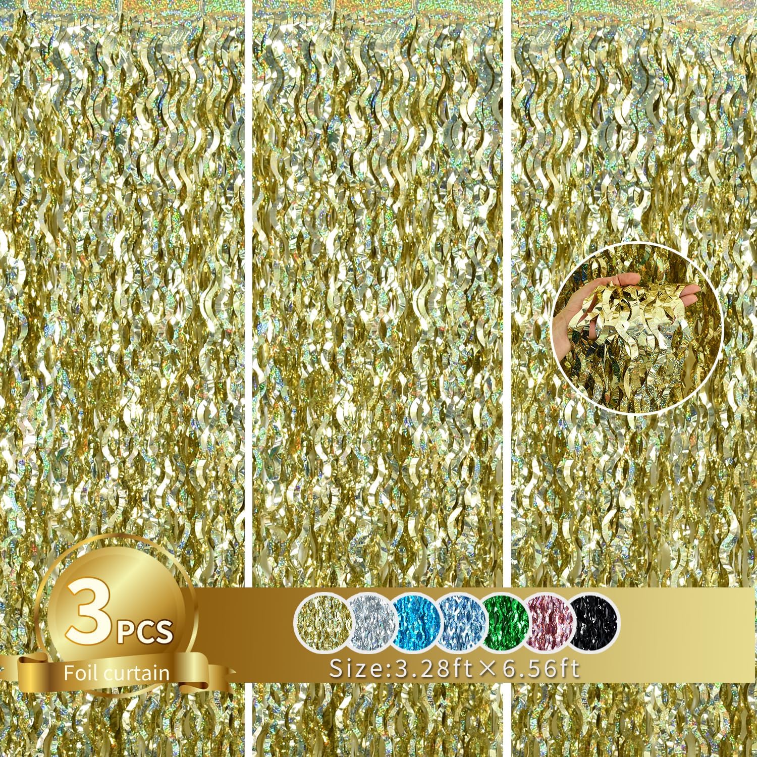 • PACKAGE CONTENTS: 3 x wavy foil curtains: Big size (wide x drop):1pcs 3.3 x 6.6 feet,9.9ft x 6.6ft in total.Brightly colored quality party decoration photography curtains will surely make your party more fun.