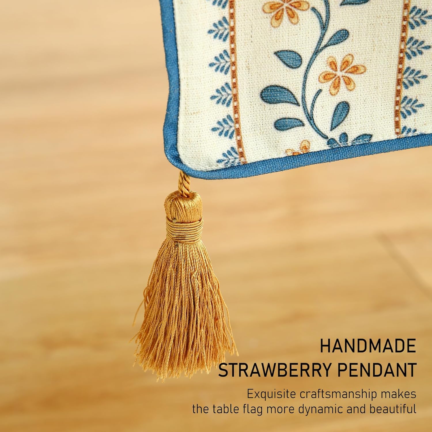 • Unique Design:Each table runner features patterns hand-drawn by our designers,showcasing exquisite details and rich textures for stunning visual appeal.The meticulous stitching ensures a smooth,wrinkle-resistant,and durable finish.With its fresh,rustic yet elegant style,it adds vibrancy and charm to your home decor