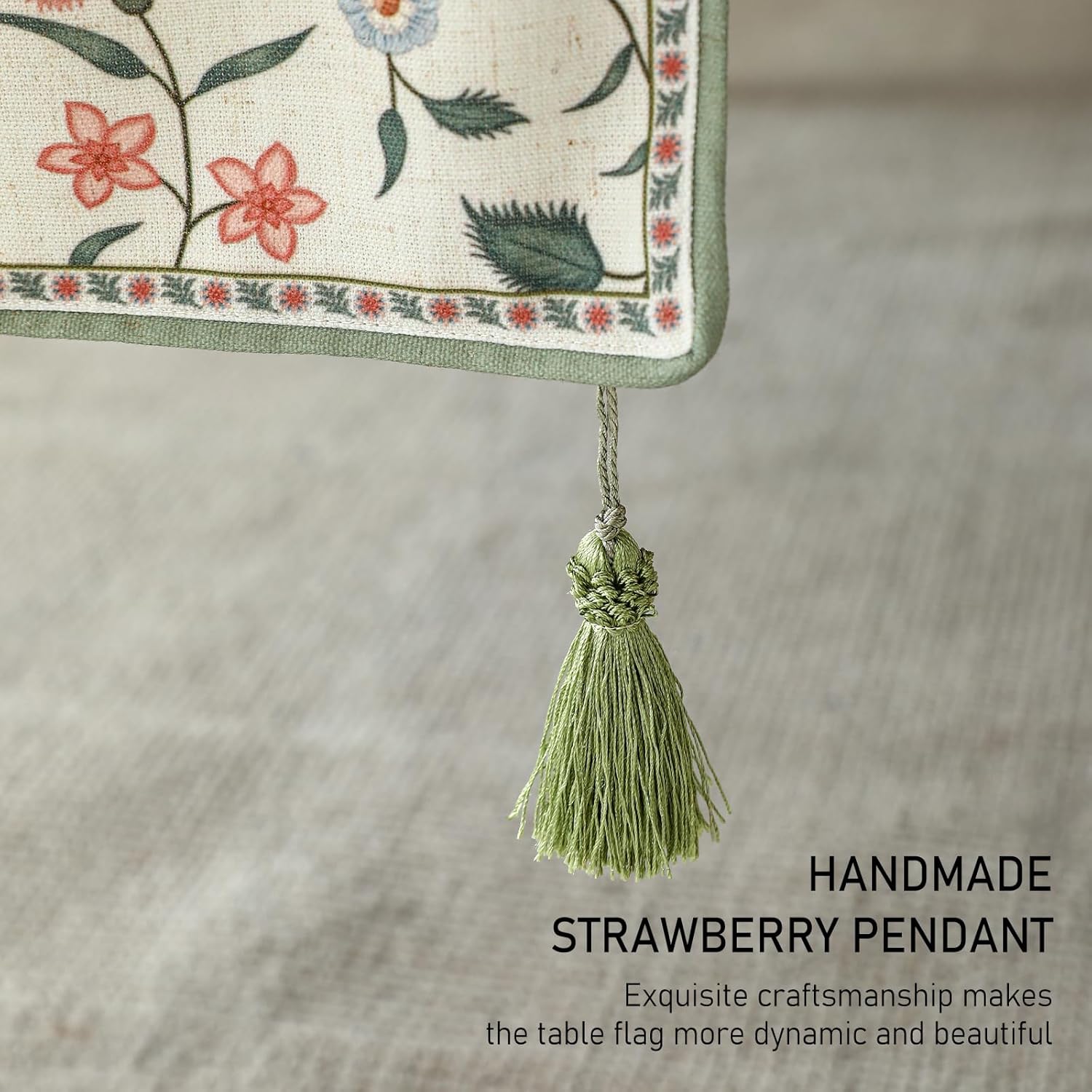 • Unique Design:Each table runner features patterns hand-drawn by our designers,showcasing exquisite details and rich textures for stunning visual appeal.The meticulous stitching ensures a smooth,wrinkle-resistant,and durable finish.With its fresh,rustic yet elegant style,it adds vibrancy and charm to your home decor