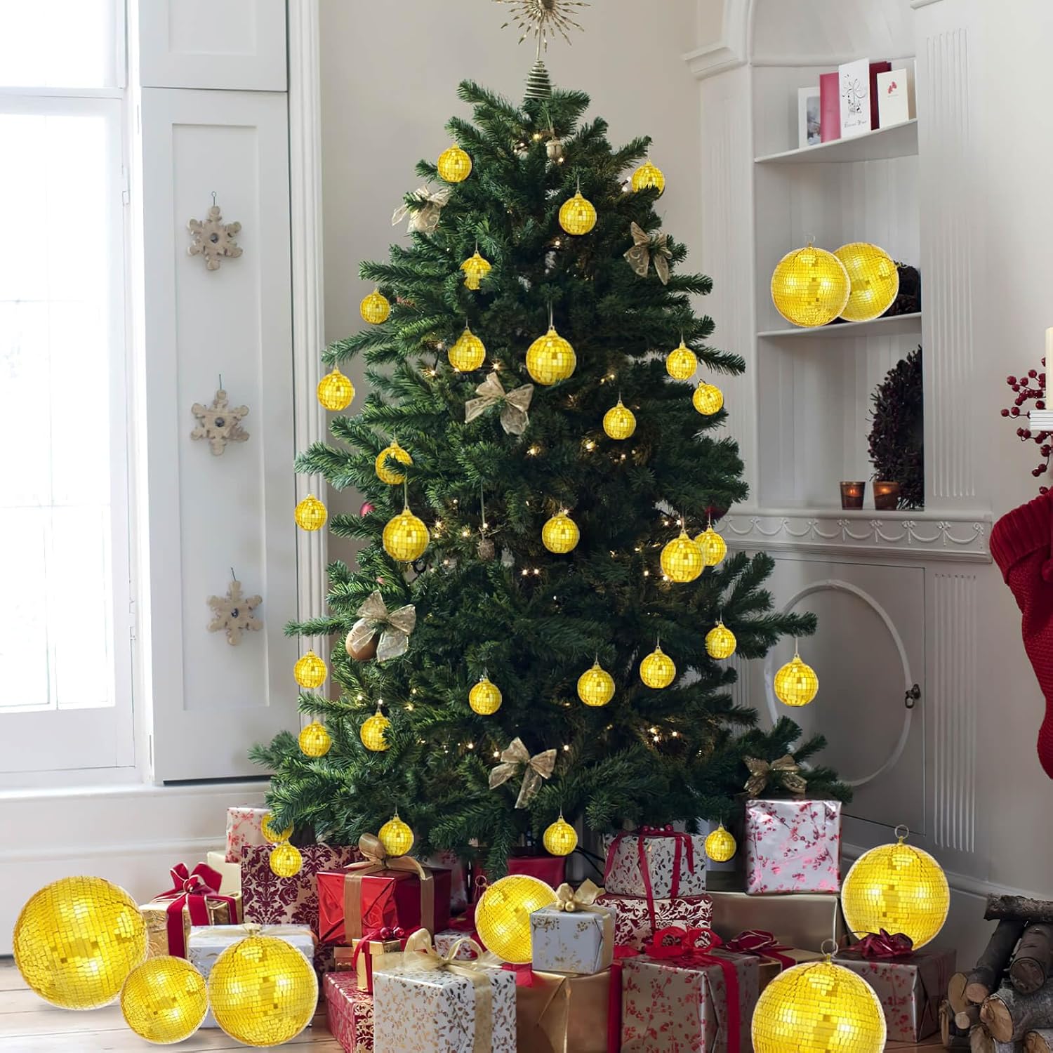Gold Mirror Disco Ball Hanging: 6 Inches Reflective Ball - 80s Party Club Stage Props DJ Light Effect Decoration (6''-4PCS)