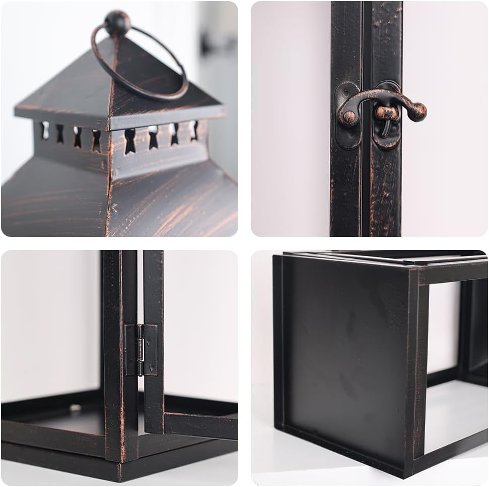 • Suitable for Most Outdoor Scenes——The set of 2 Large Bronze vintage LED candle lantern is perfect for outdoor use. The metal material with LED candles can withstand wind and rain which allows you to see the bright, flickering candles, creating a fantastic atmosphere. (NO GLASS)